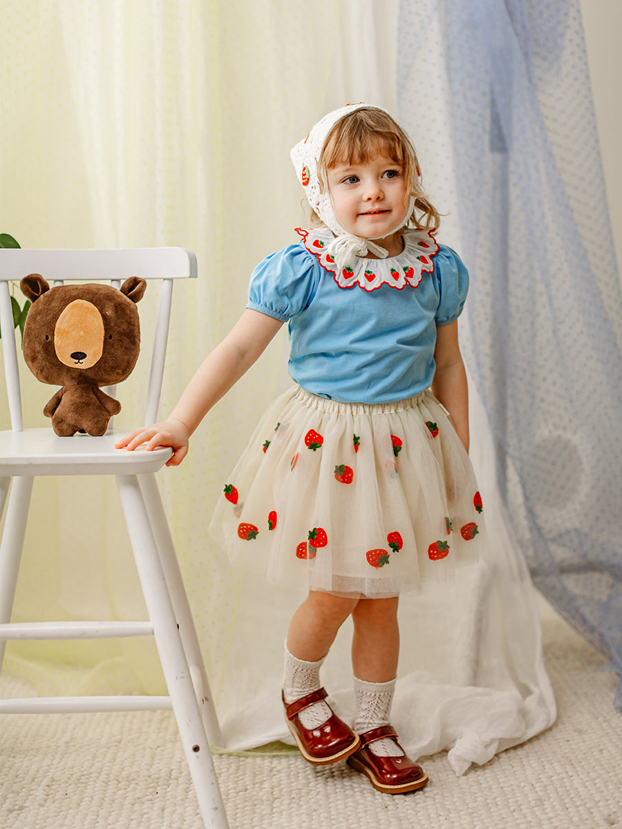 Karisa Strawberry Jersey Top, Sky Blue