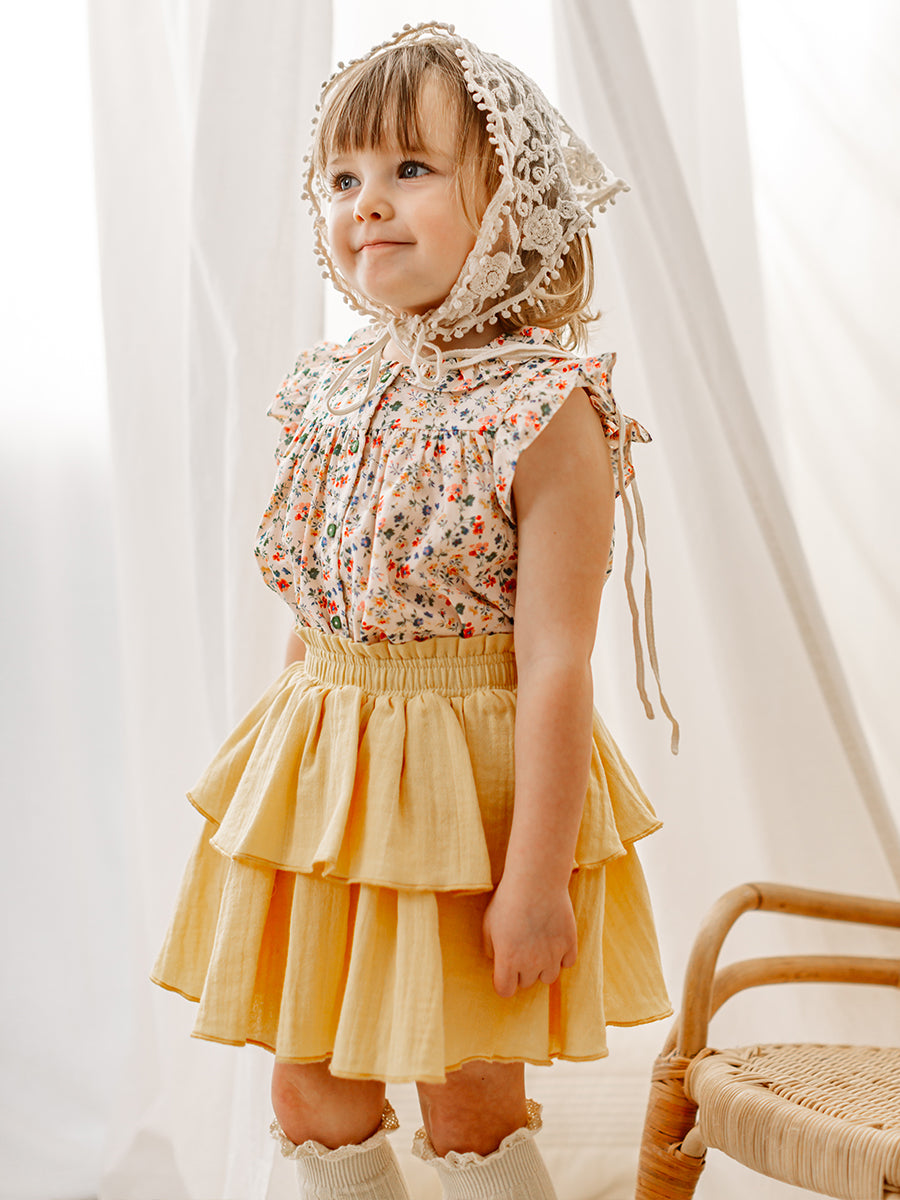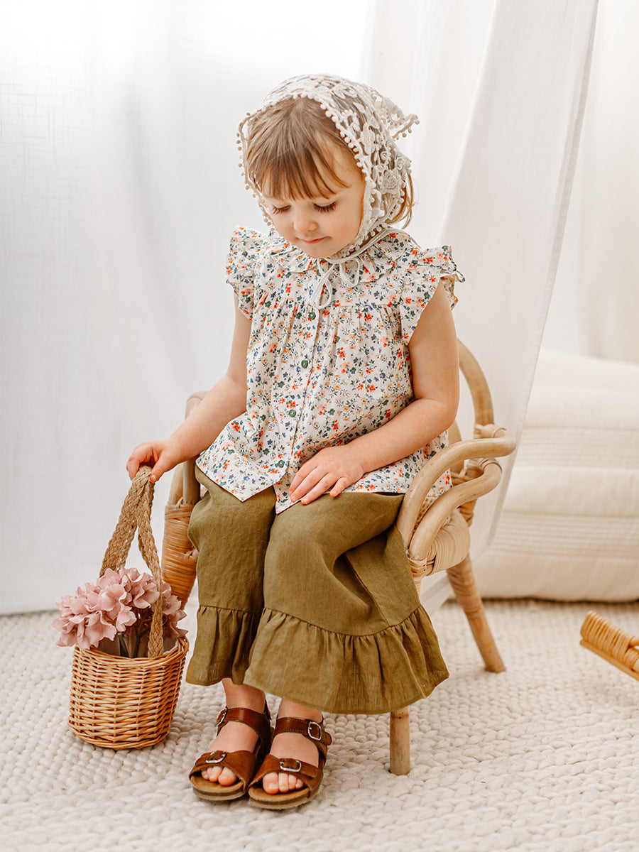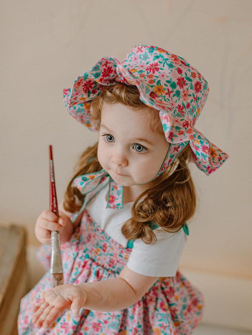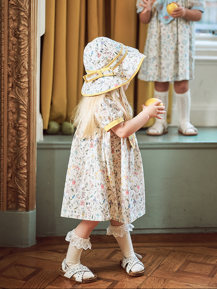 Titled Wildflowers & Wonders, the collection explores the idea of sensory nostalgia - clothing designed to evoke memory through softness and craft. Romantic florals scatter across airy organic cottons, while delicate hand-smocking and embroidery add a quietly luxurious, heirloom touch so clothing feels not only beautiful but also comforting with the familiarity of favourite garments worn through long summer days.