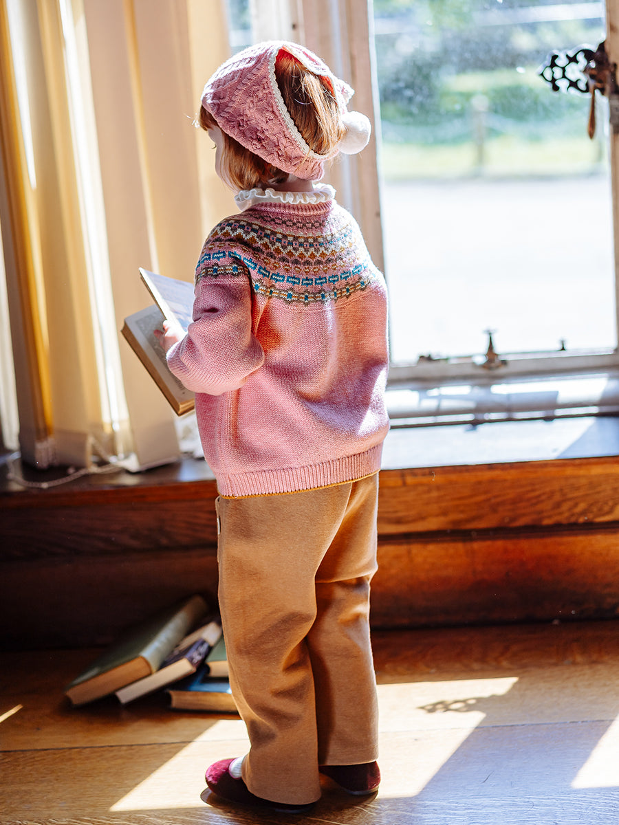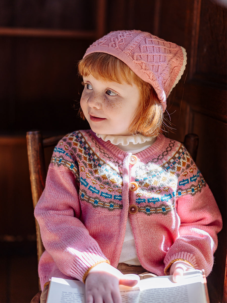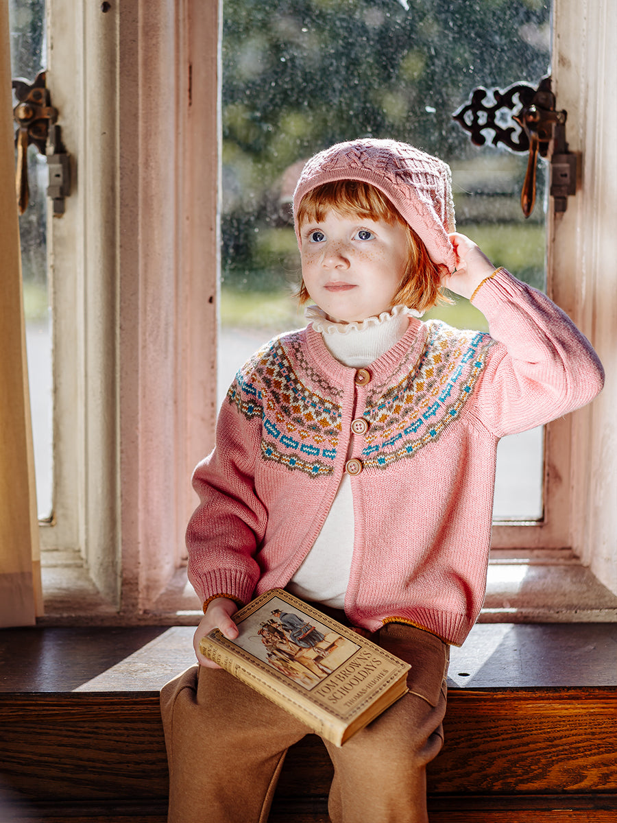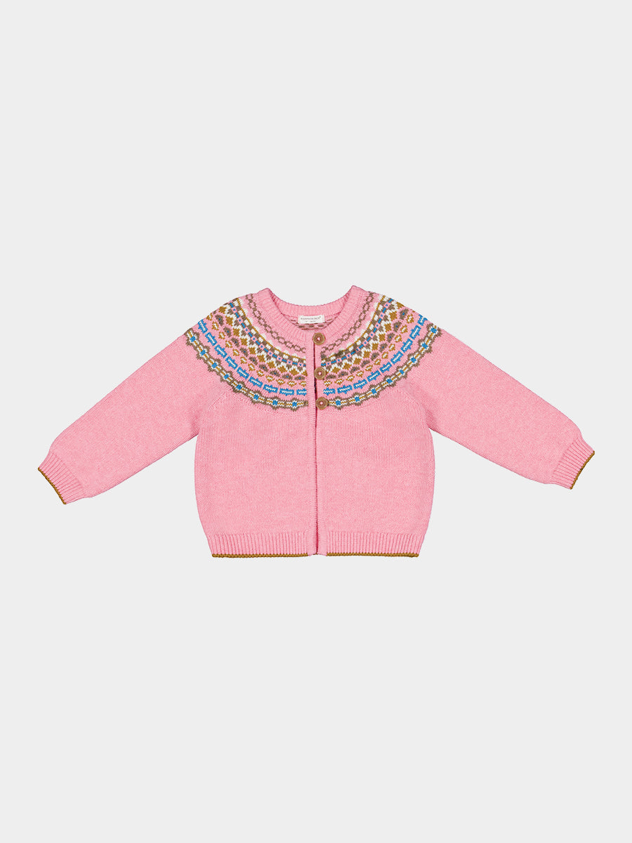 Fuchsia Fair Isle Cardigan, Blush Fair Isle