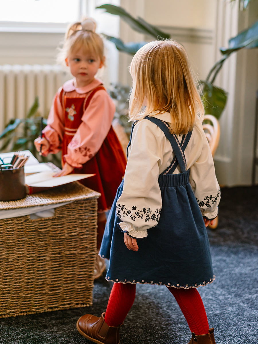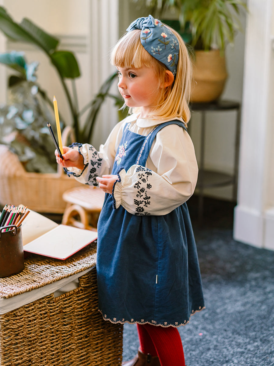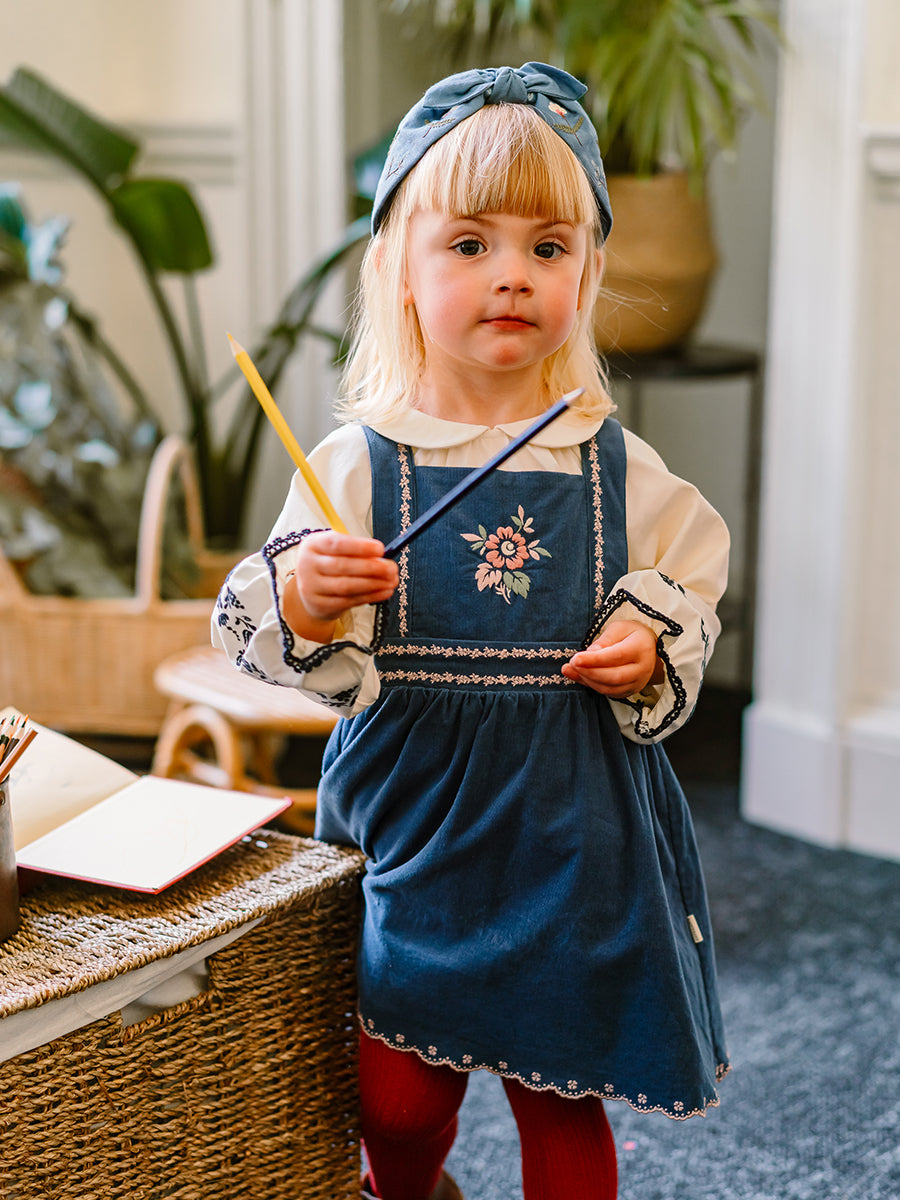 Carey Corduroy Dungaree Dress, Denim Blue