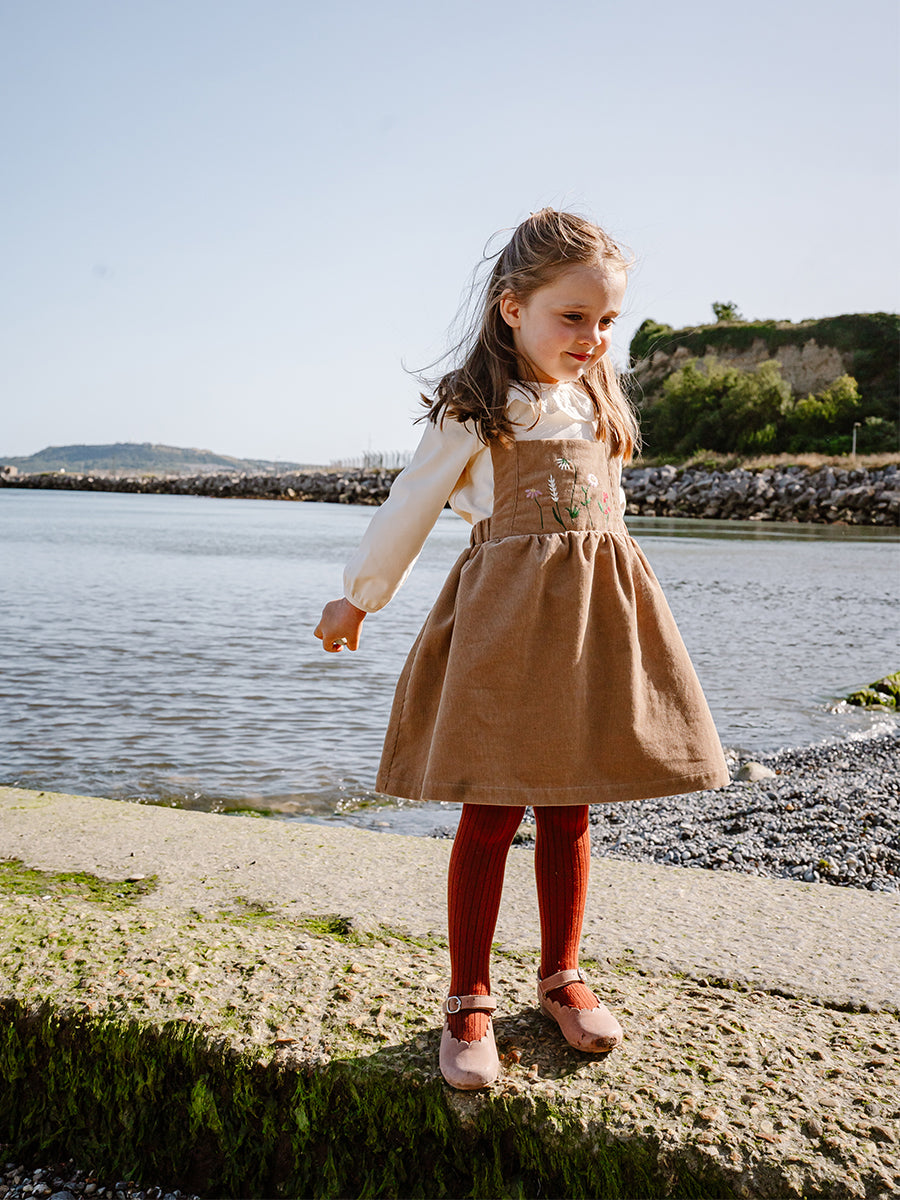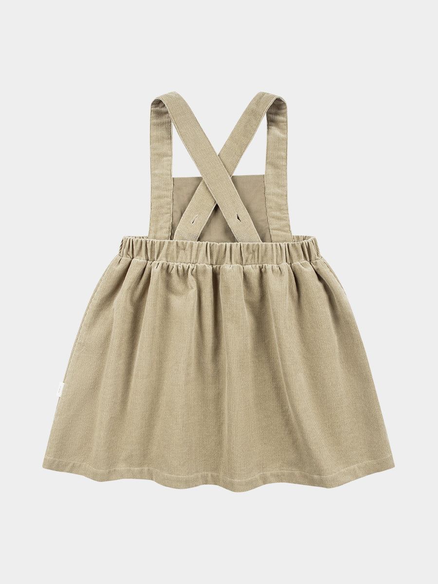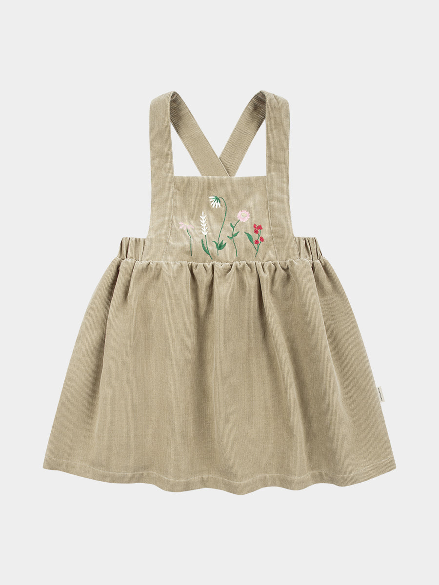 Kalmia Embroidered Corduroy Overall Dress, Khaki