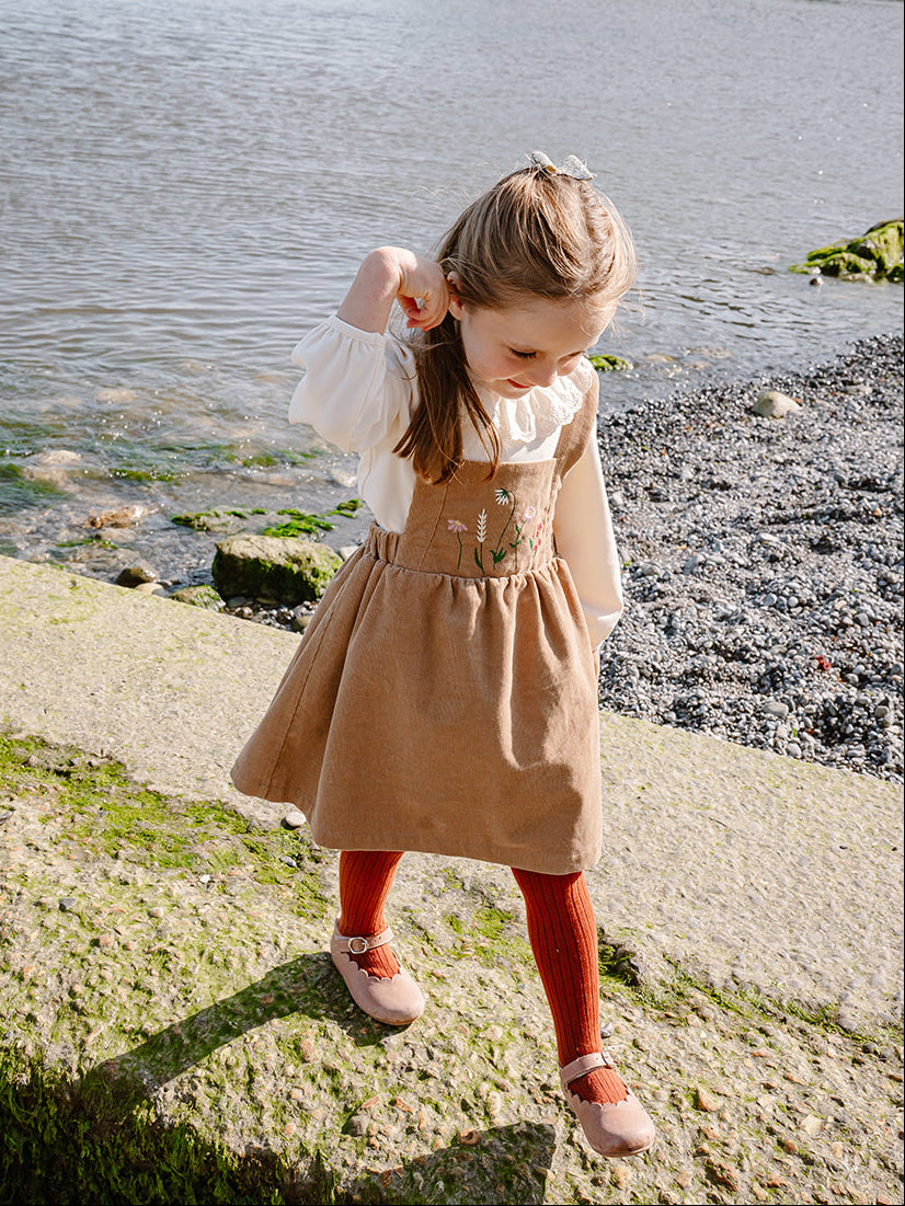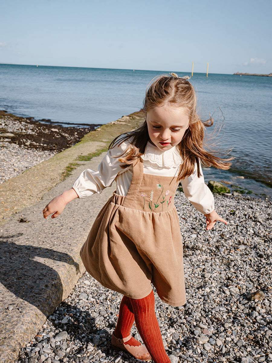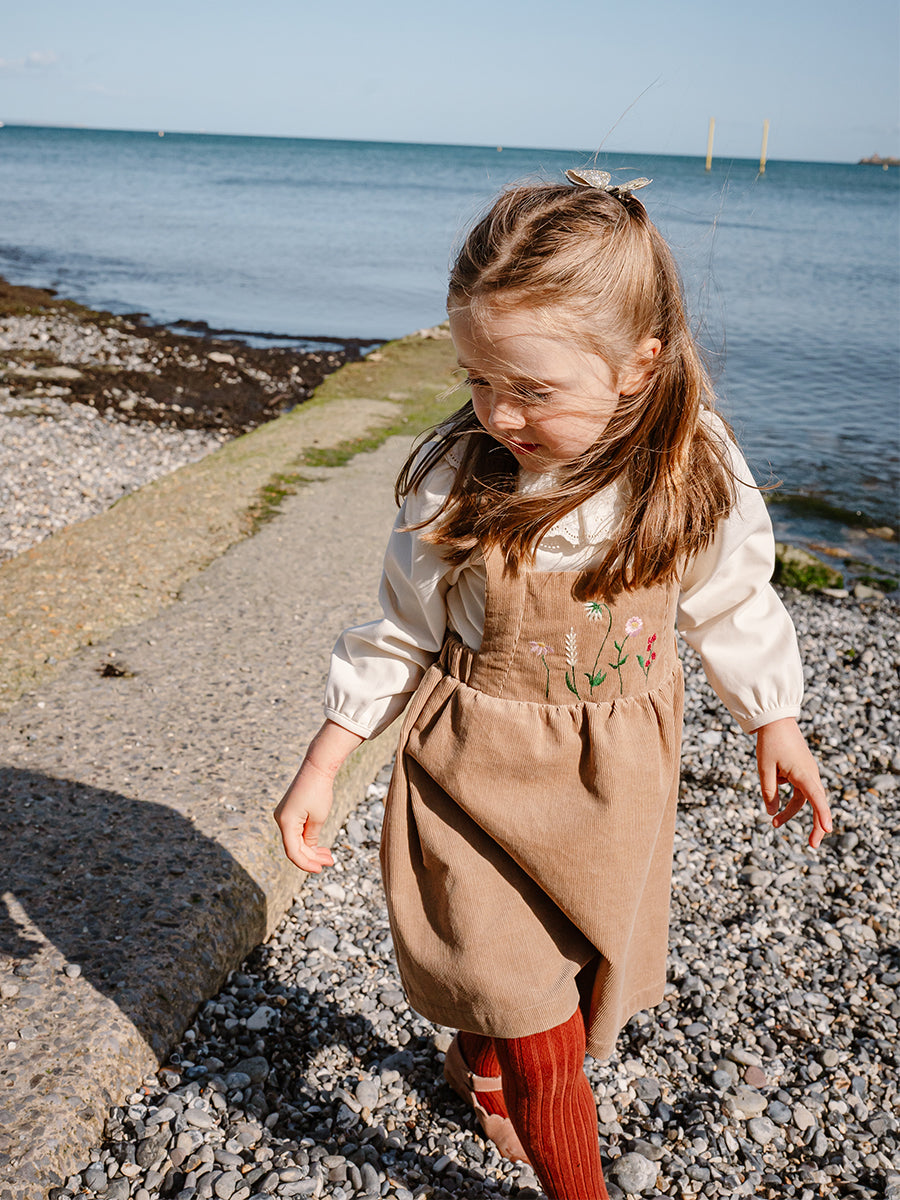Kalmia Embroidered Corduroy Overall Dress, Khaki