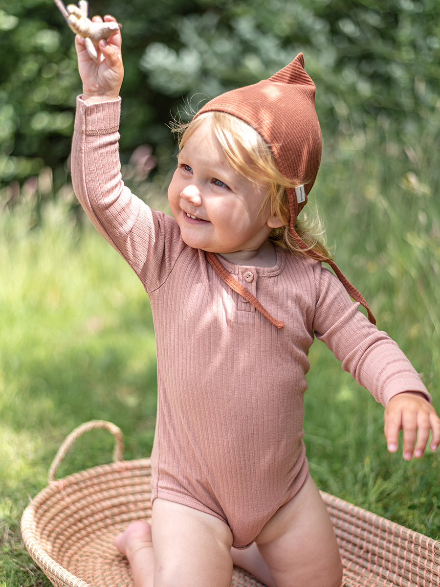 Organic Essential Long-Sleeve Bodysuit, Cinnamon