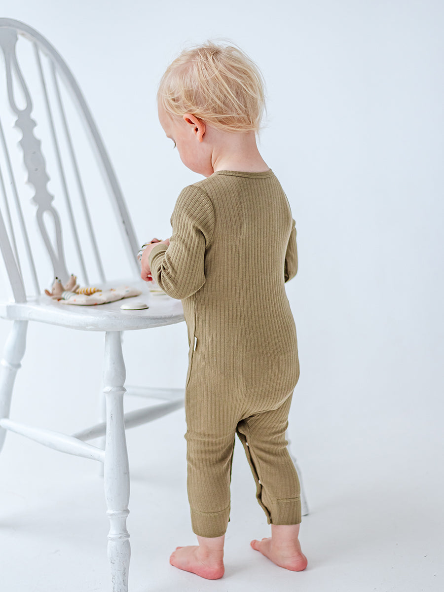 Organic Essential Long-Sleeve Sleepsuit, Moss