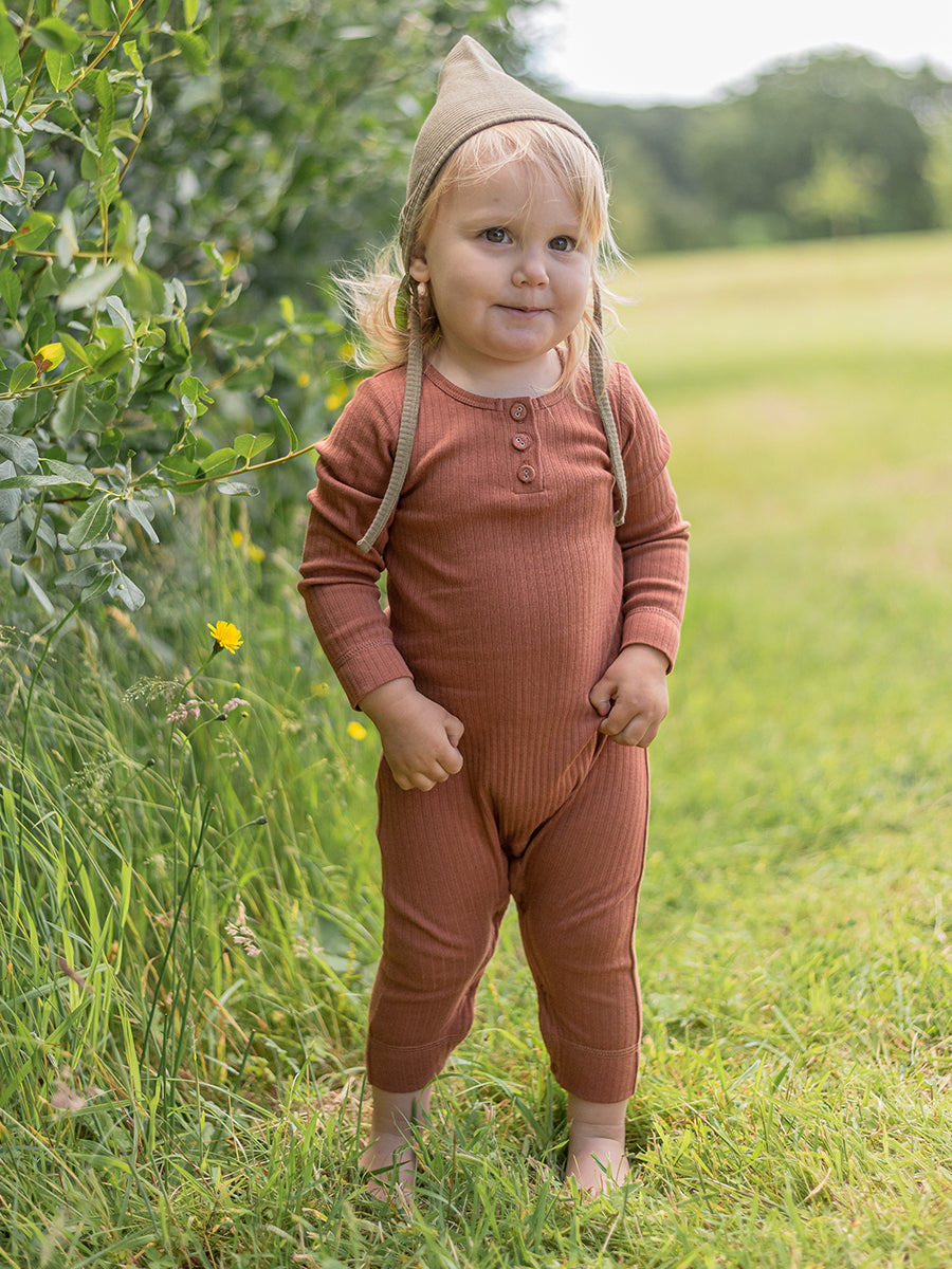 Organic Essential Long-Sleeve Sleepsuit, Cinnamon