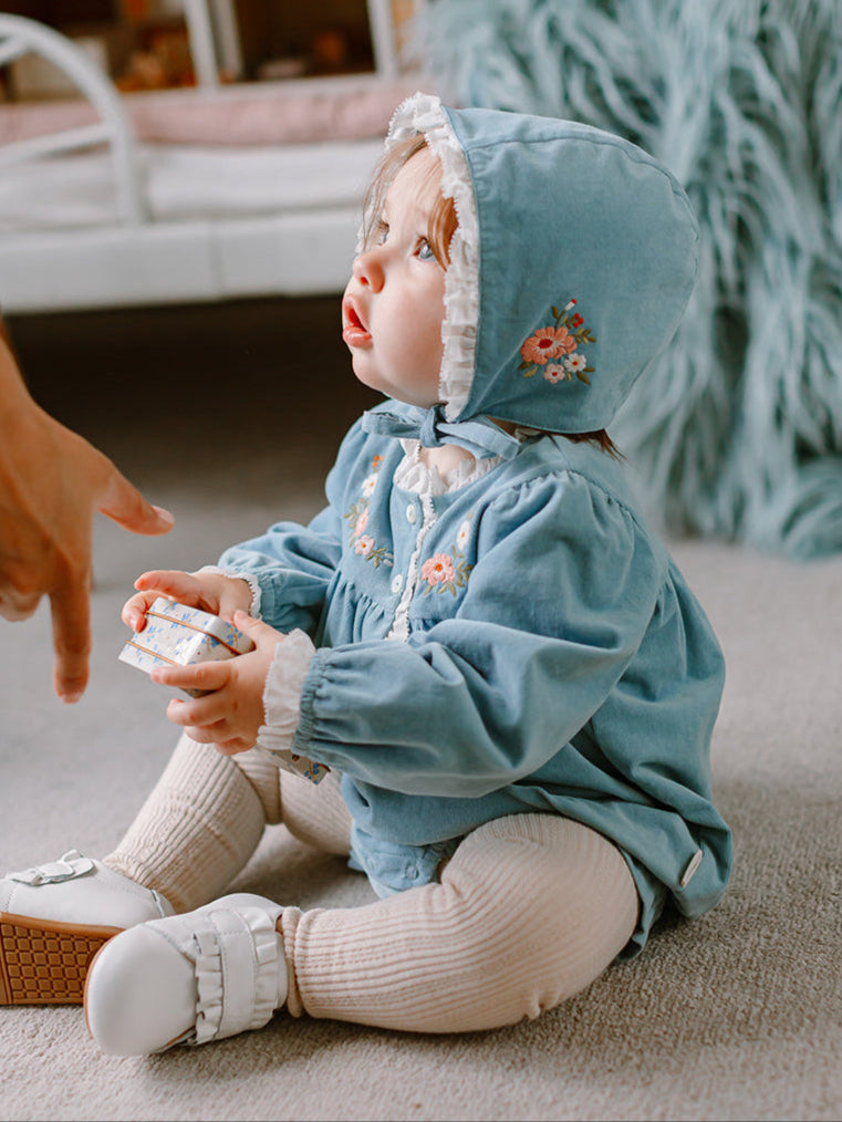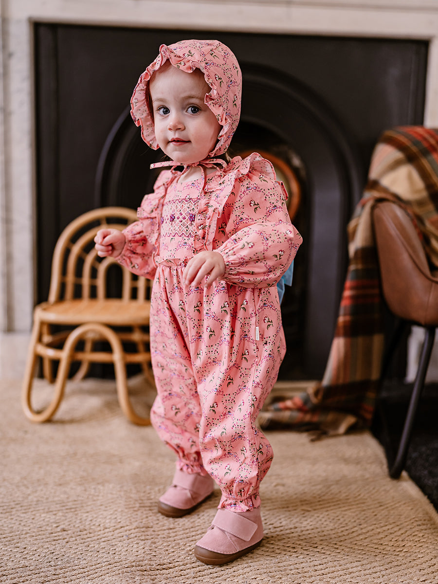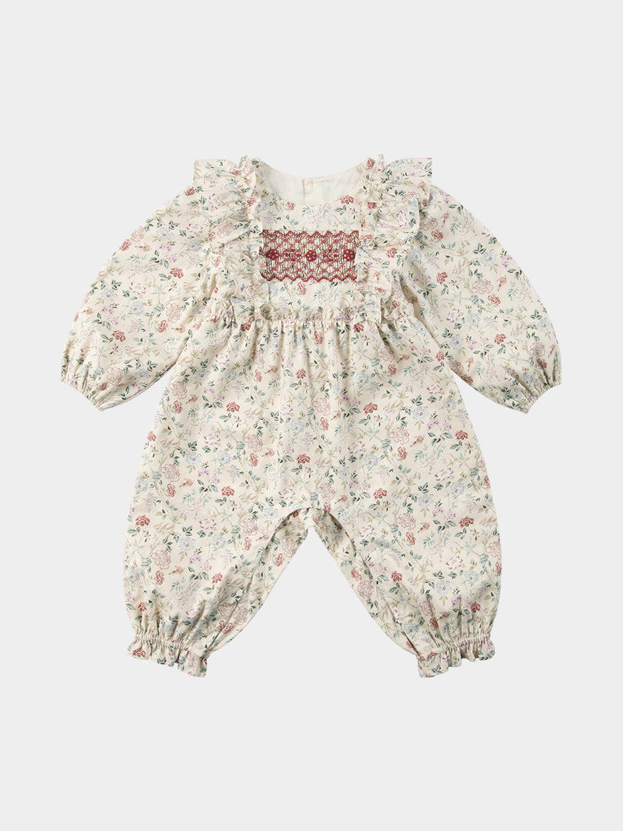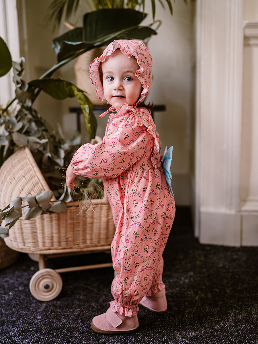 Adelaide Hand-Embroidered Romper, Vintage Bouquet, Rose