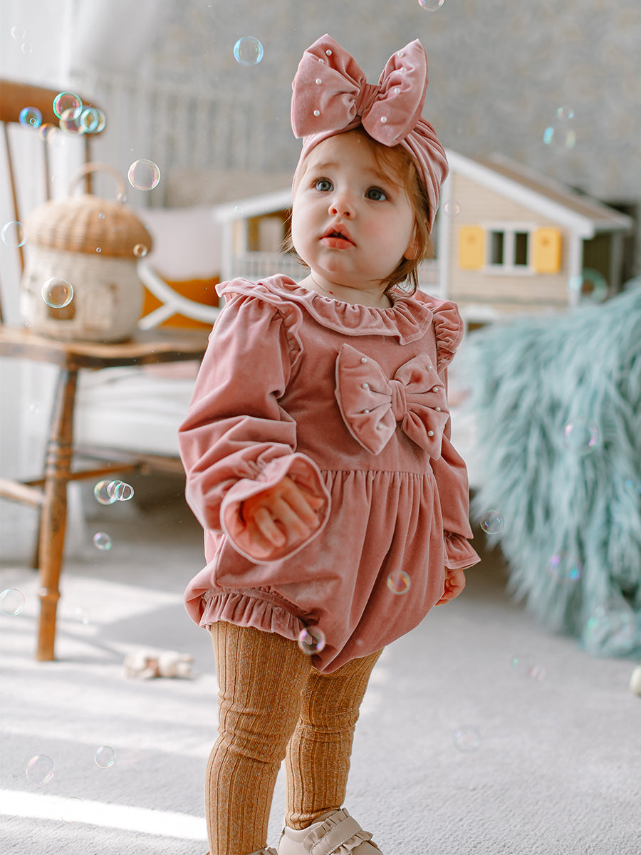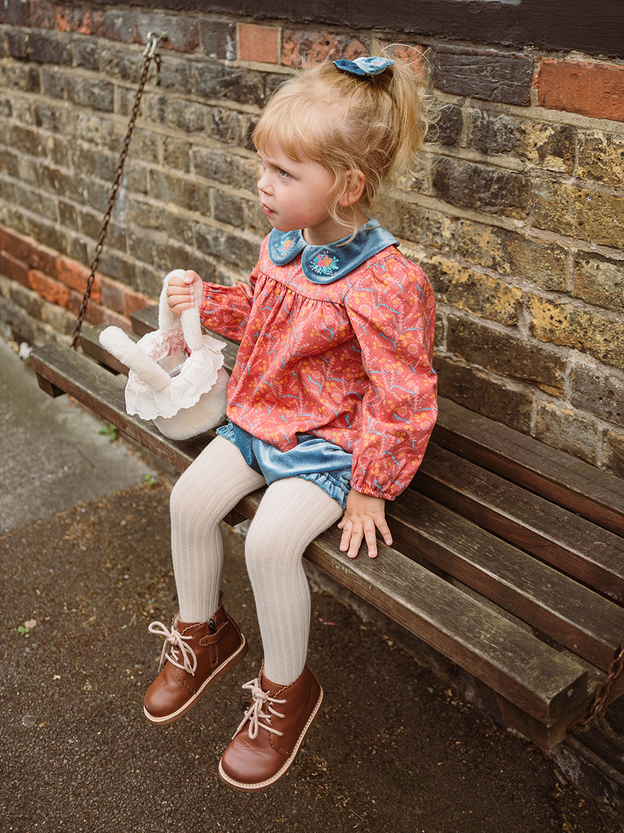 Luna Blouse and Bloomers Set, Strawberry Flower Field, Blush
