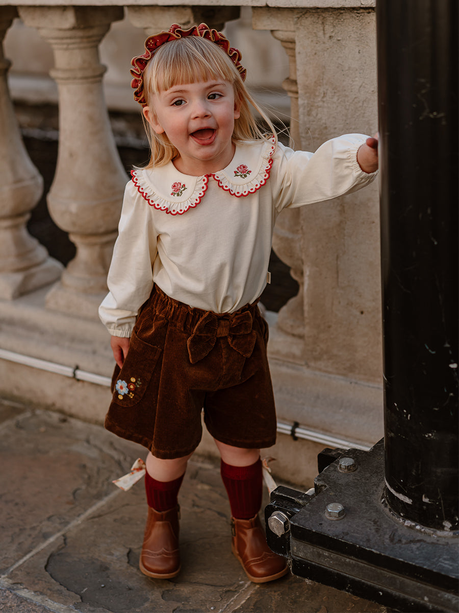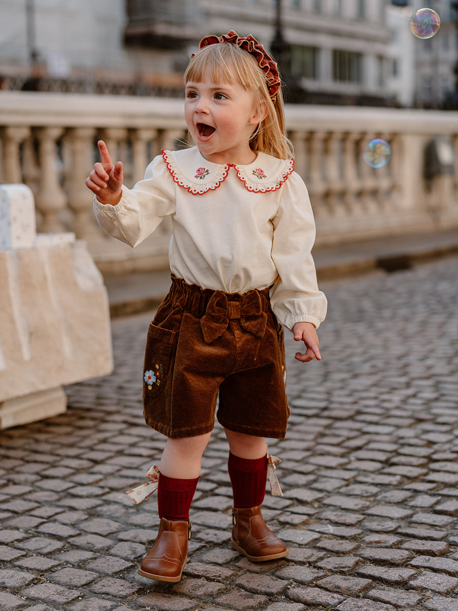 Camila Quilted Trousers, Strawberry Flower Field, White