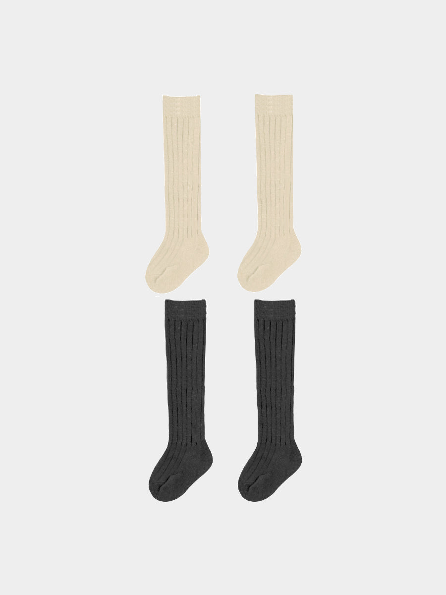 Etienne Knee High Socks Set of 2, Creme Brulee & Graphite