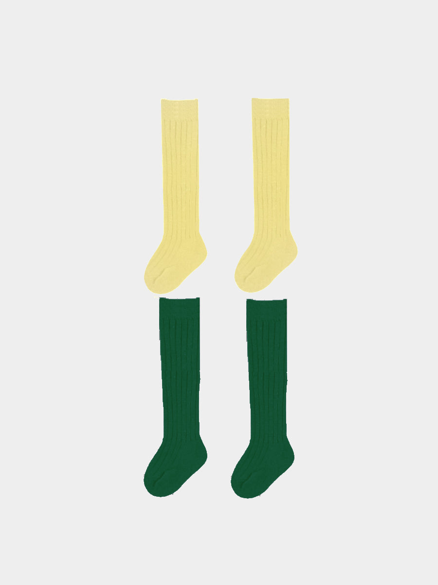 Etienne Knee High Socks Set of 2, Emerald Green & Butter Yellow