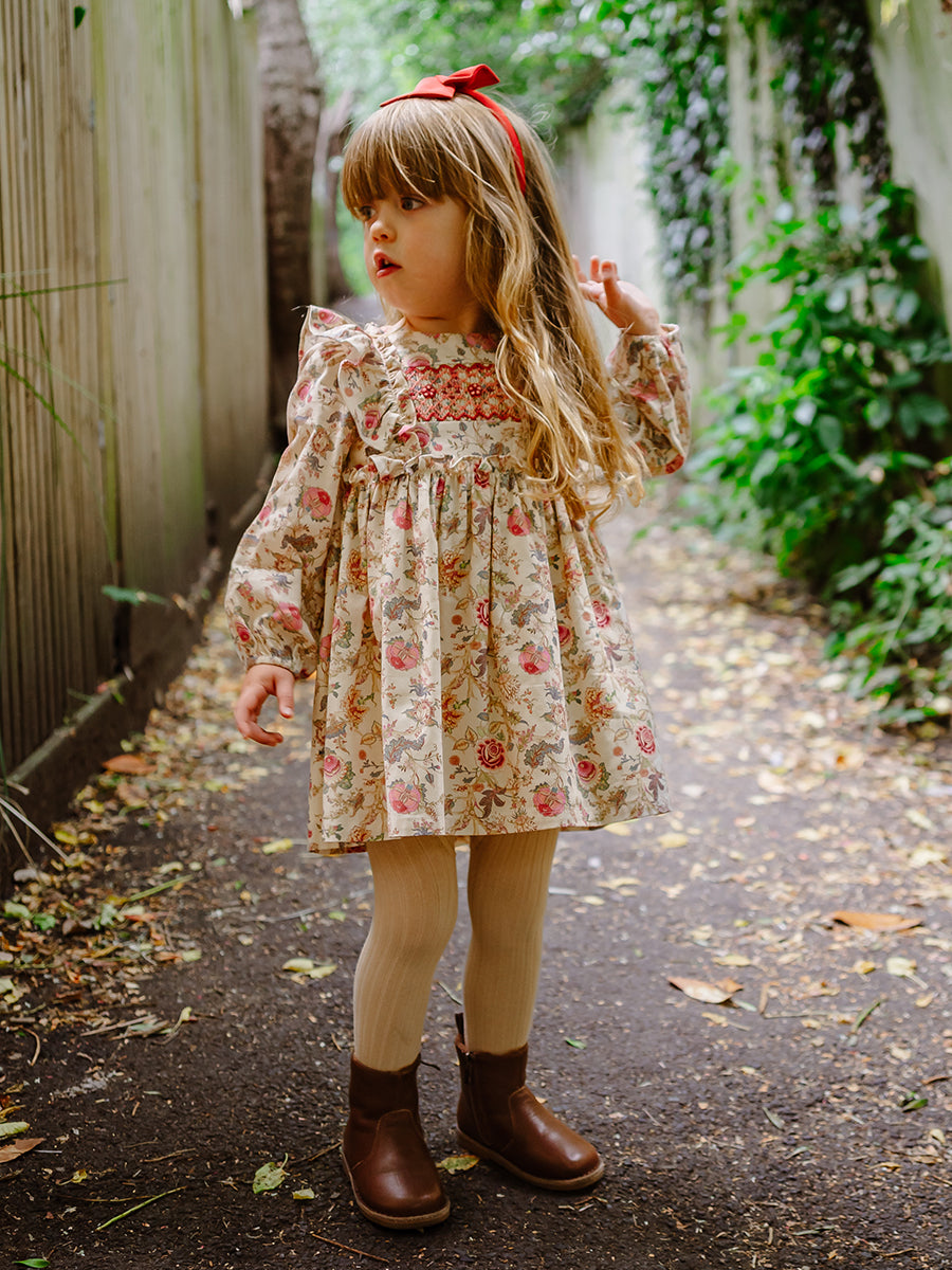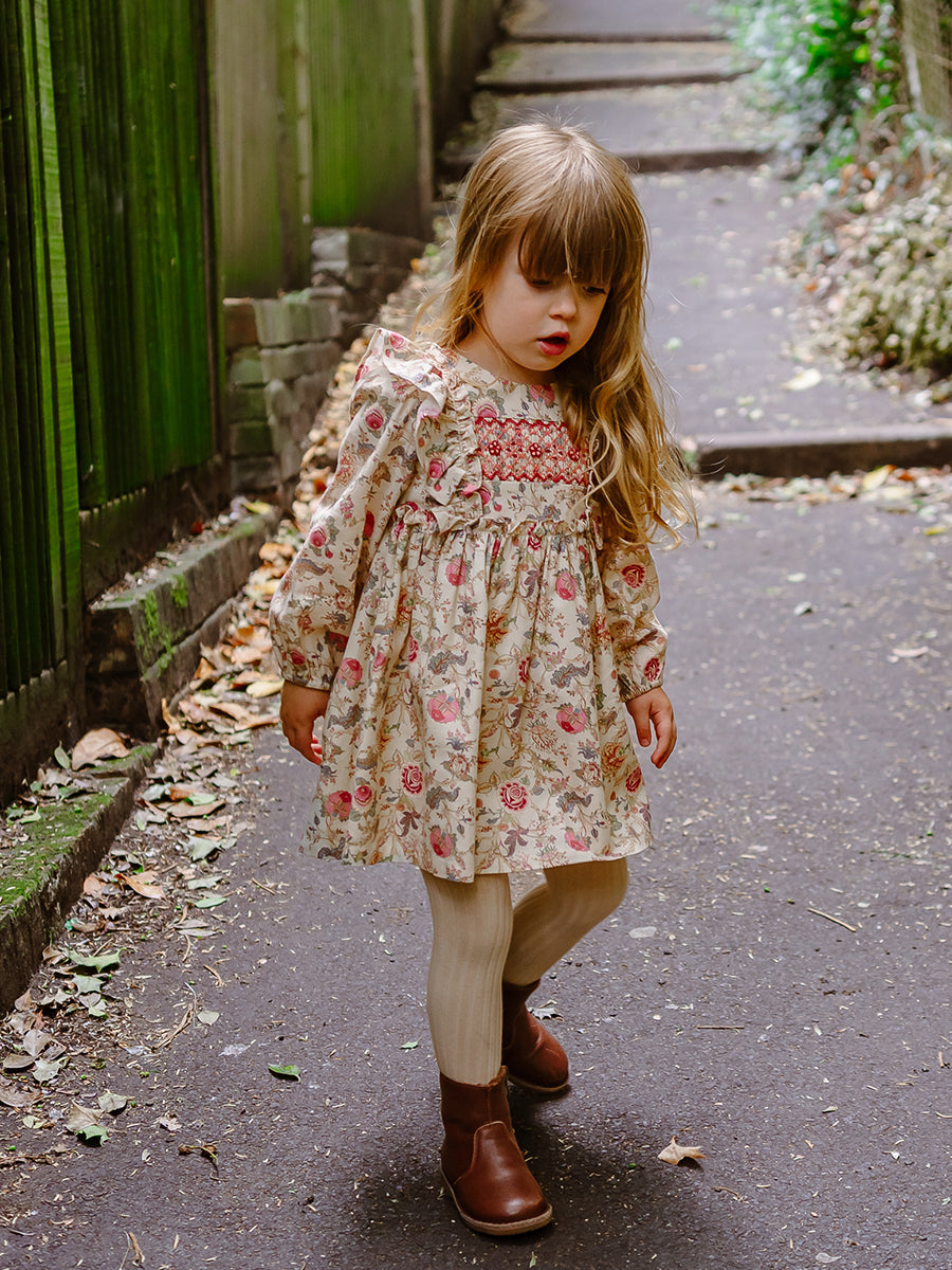 Abigail Hand-Smocked Dress, Farnese Garden, Cream
