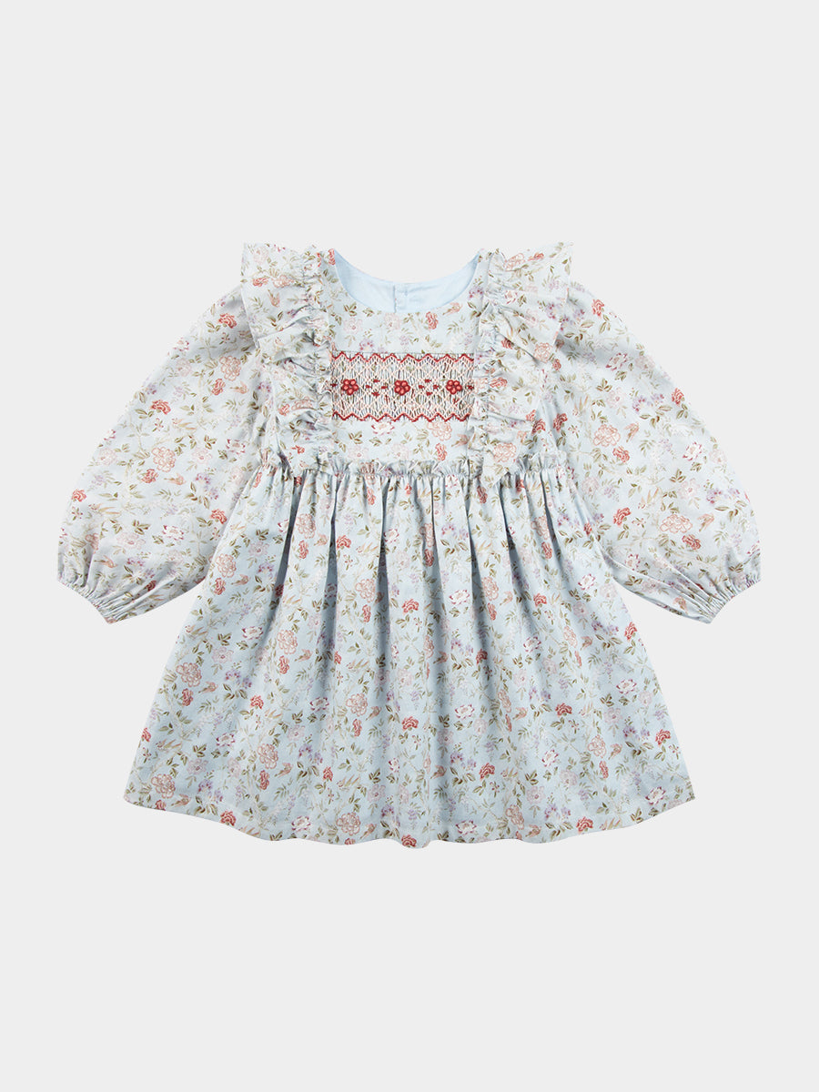 Abigail Hand-Smocked Dress, Wisteria Garden, Blue
