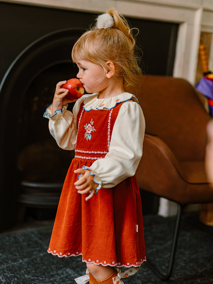 Carey Corduroy Dungaree Dress, Grapefruit Orange
