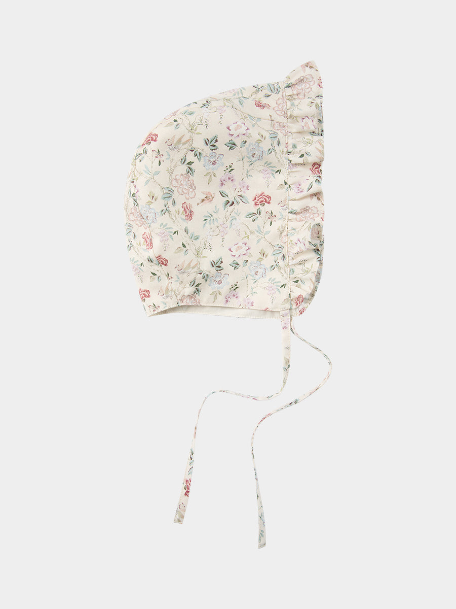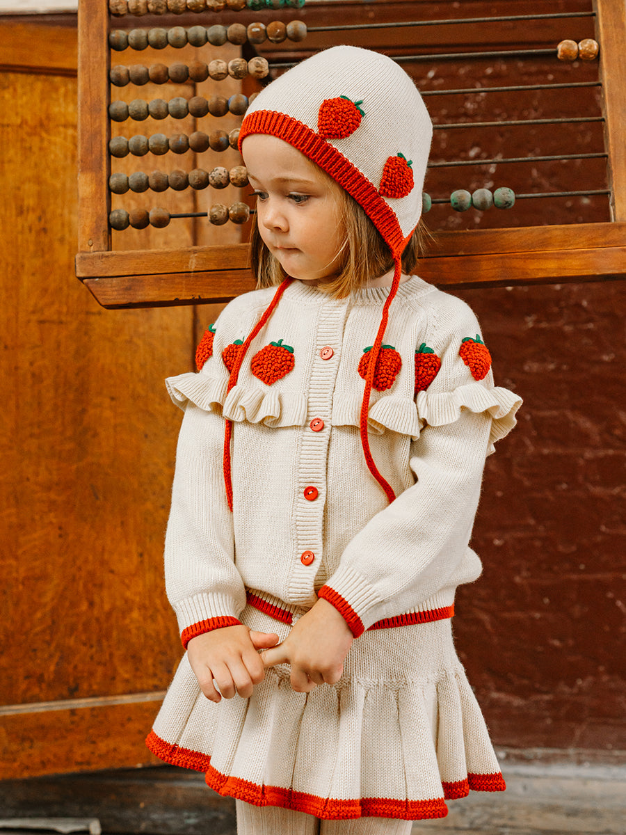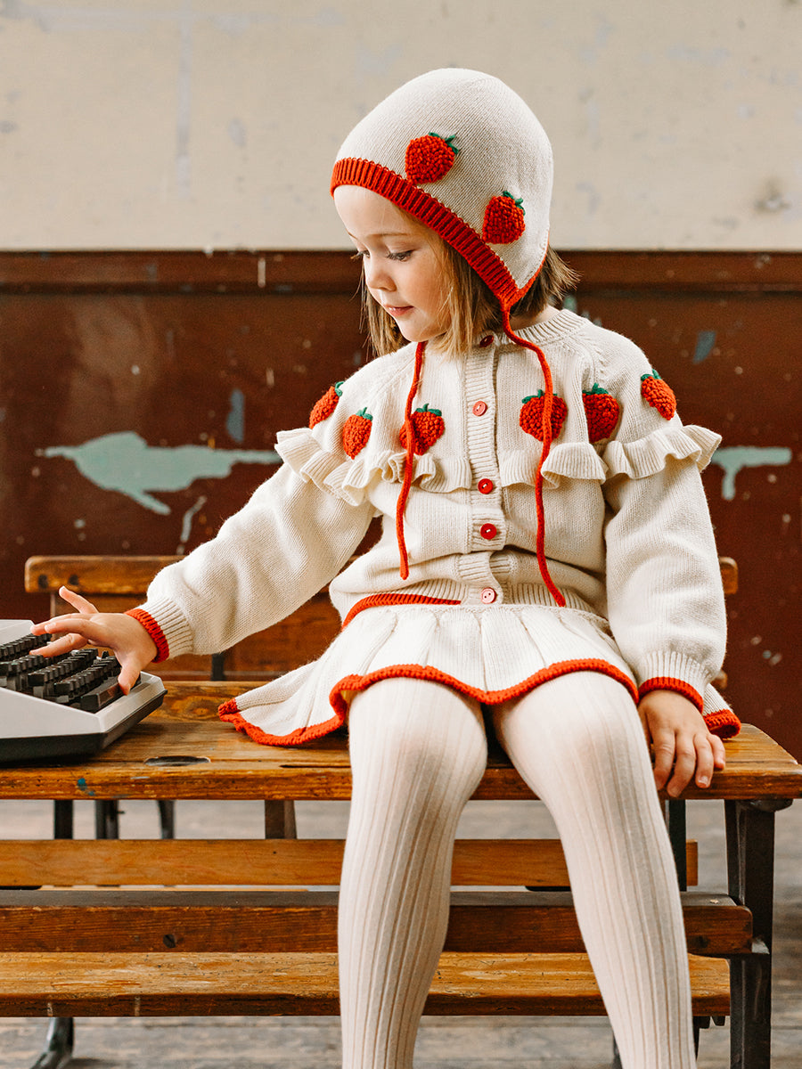 Strawberry Hand-Embroidered Bonnet, Crème Brulee