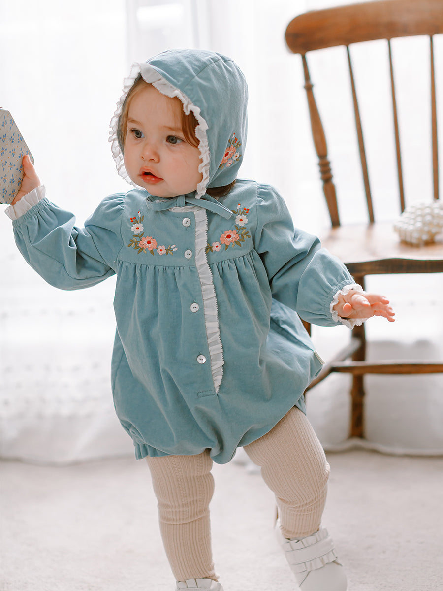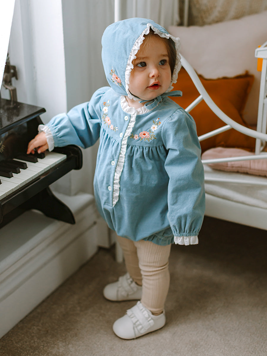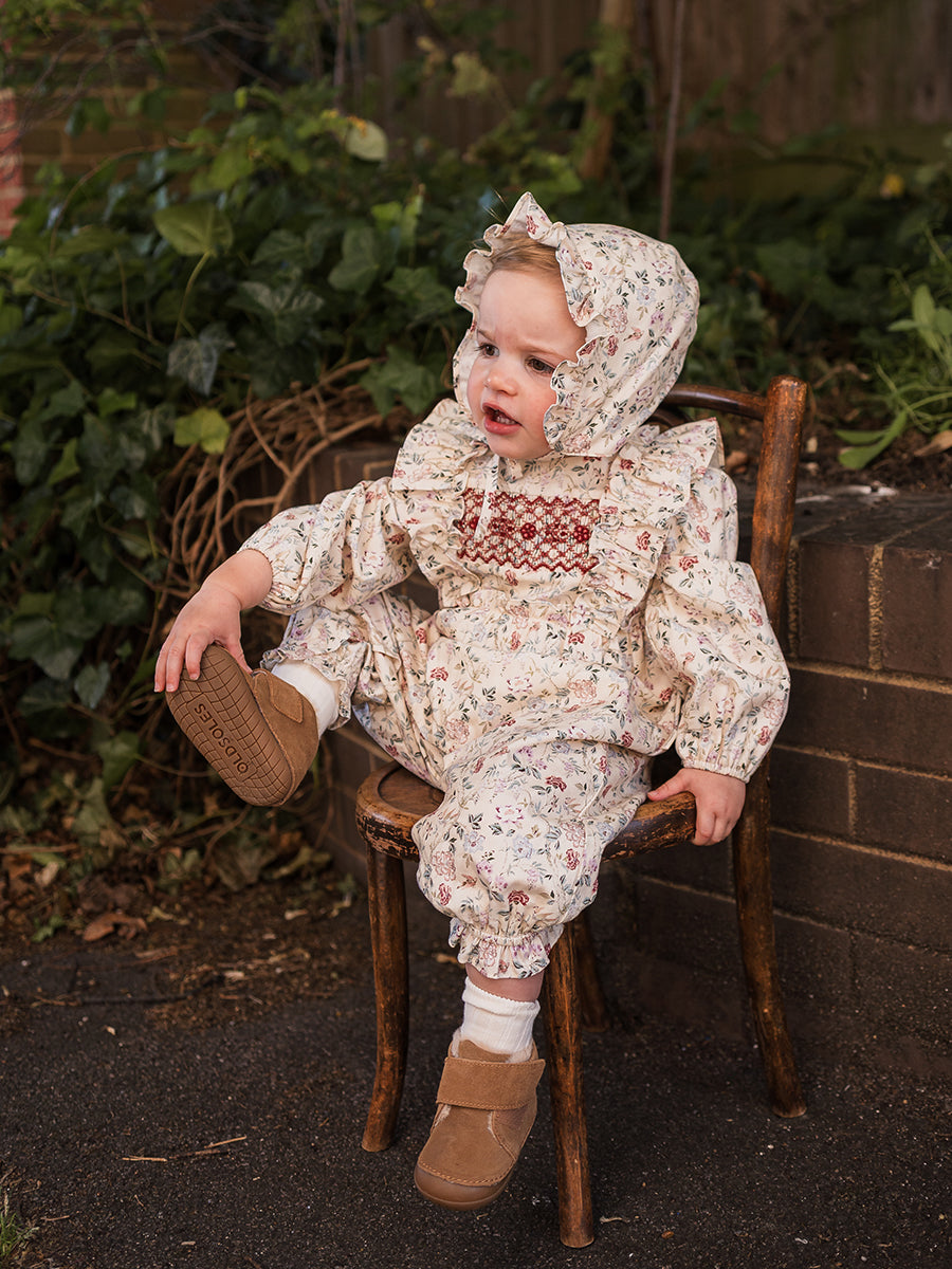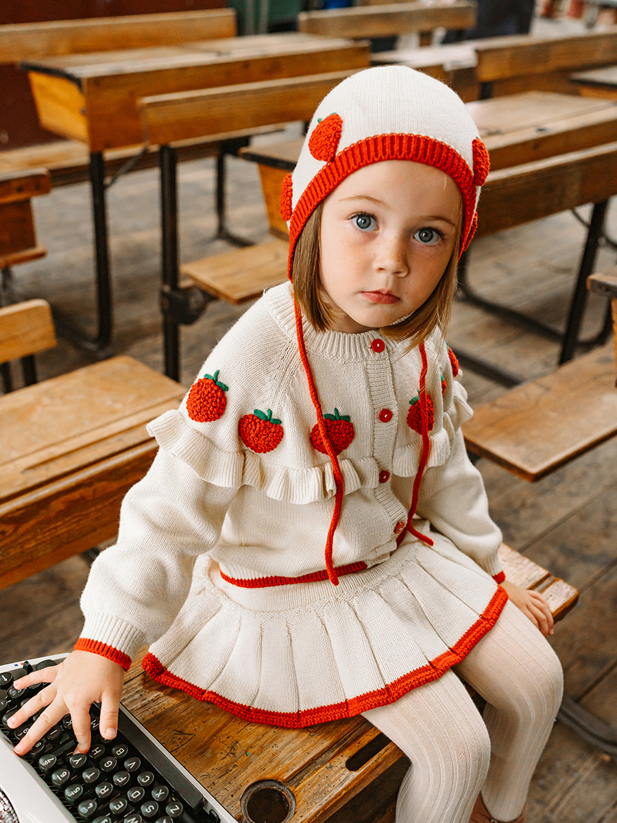 Strawberry Hand-Embroidered Bonnet, Crème Brulee