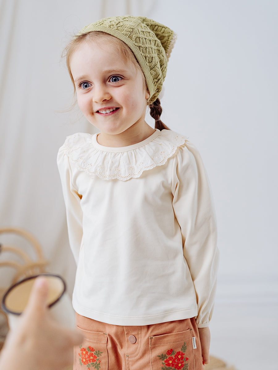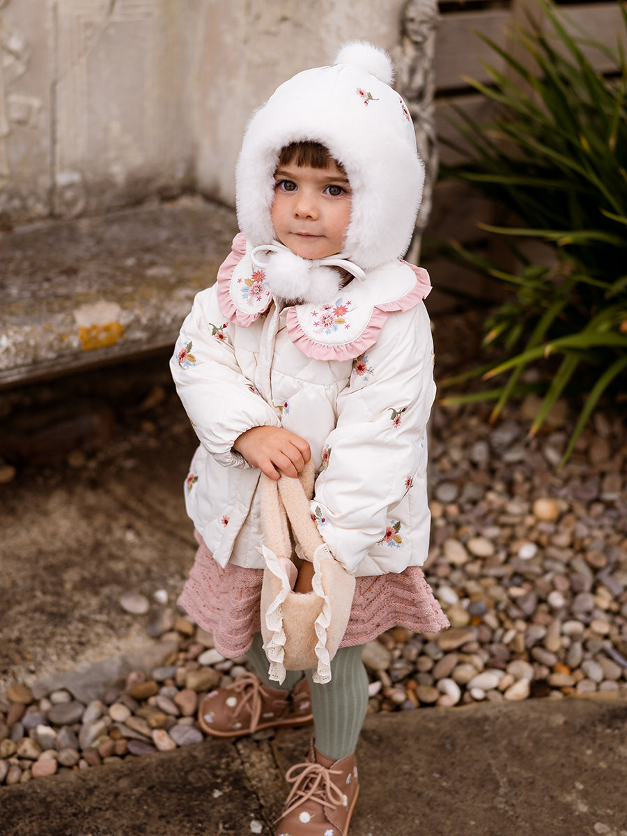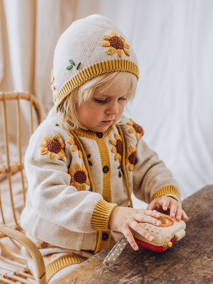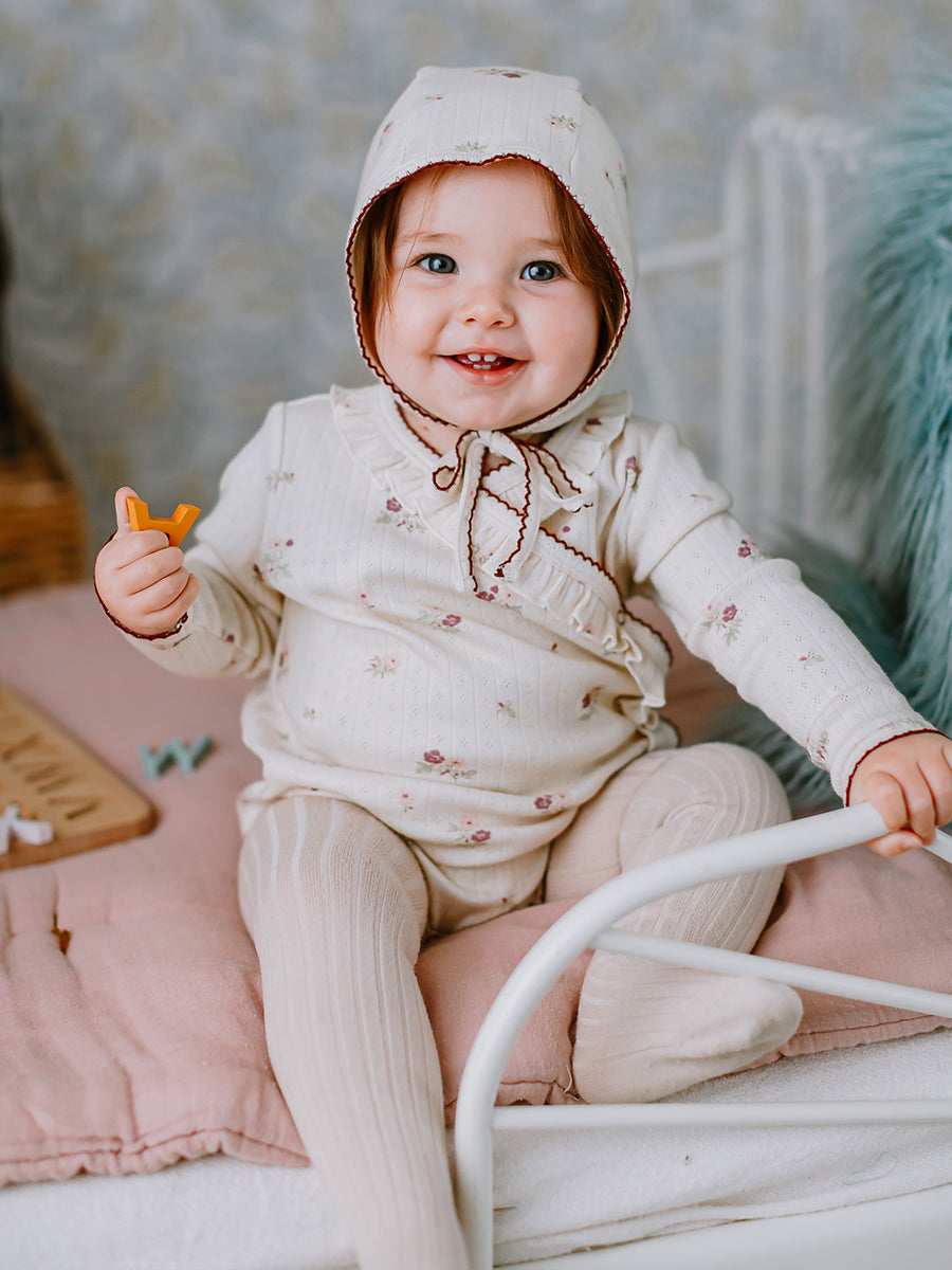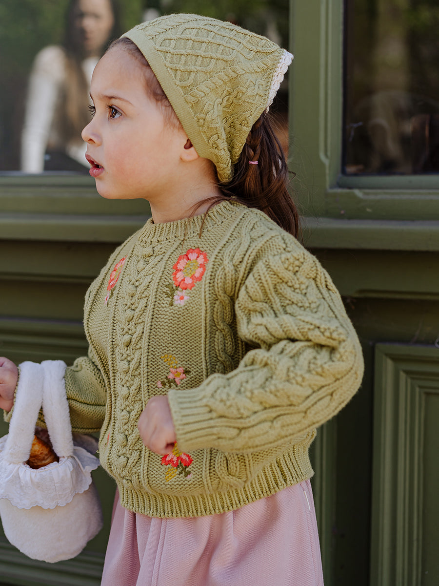 Quinn Hand-Embroidered Knitted Bonnet, Almond White