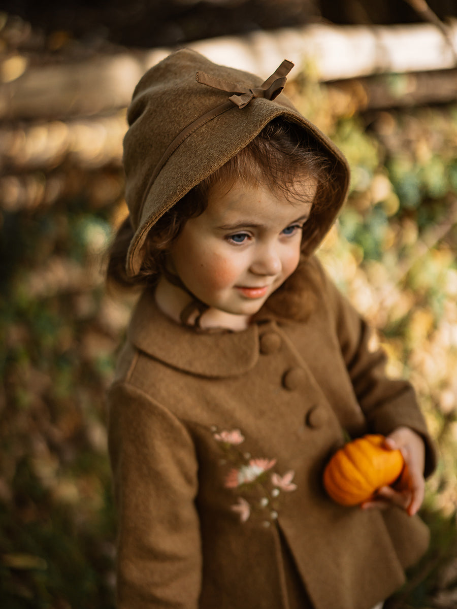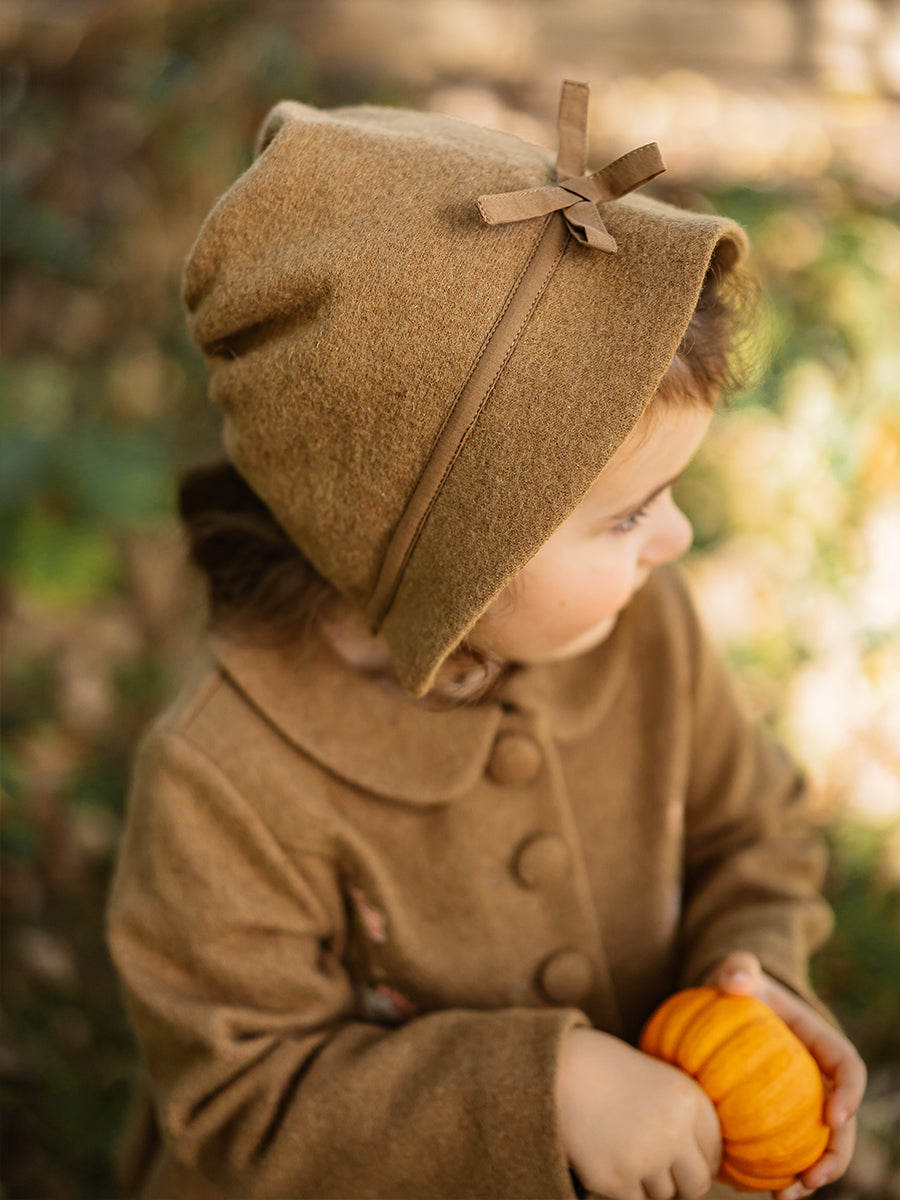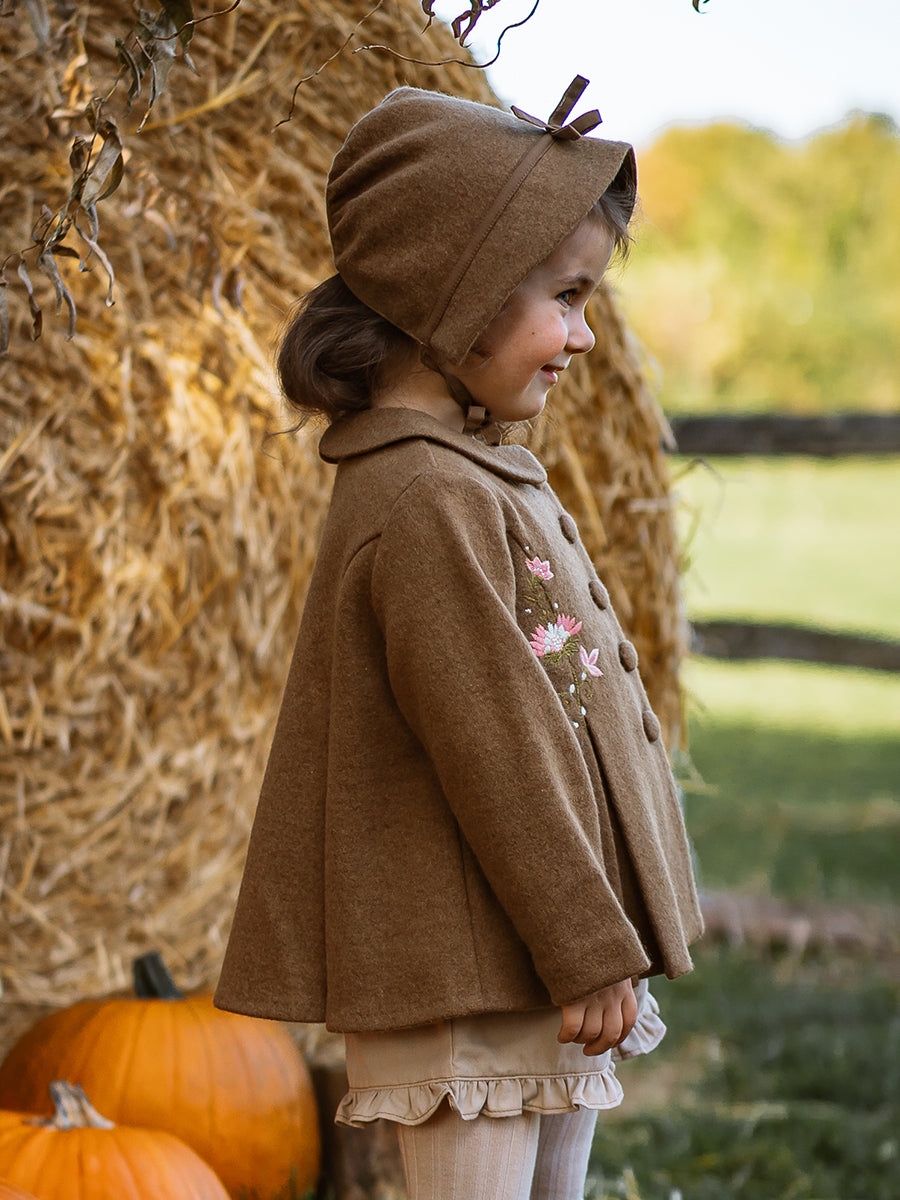 Quinn Hand-Embroidered Knitted Bonnet, Smoky Brown