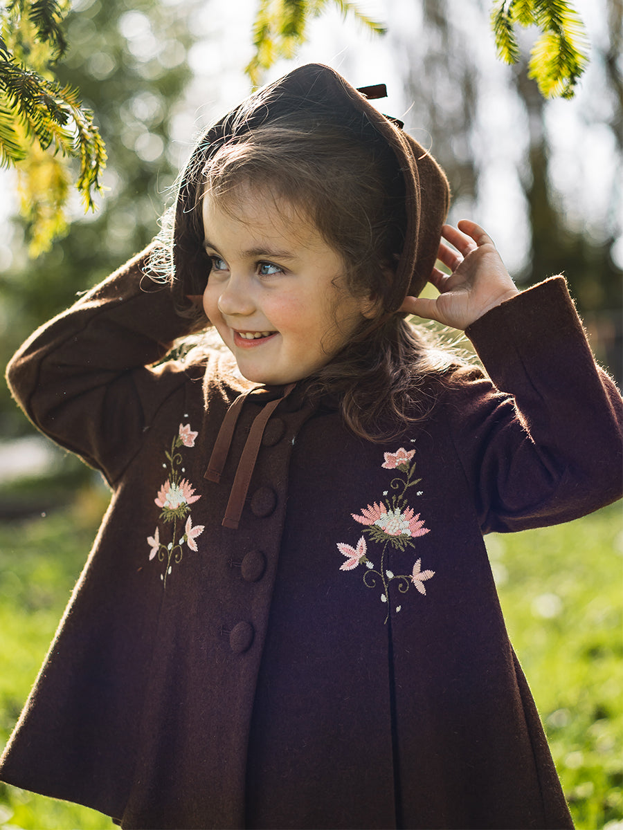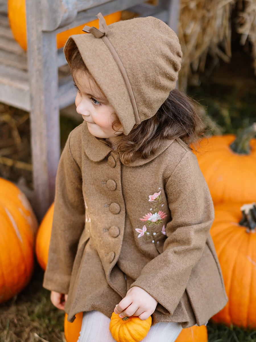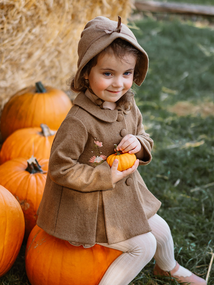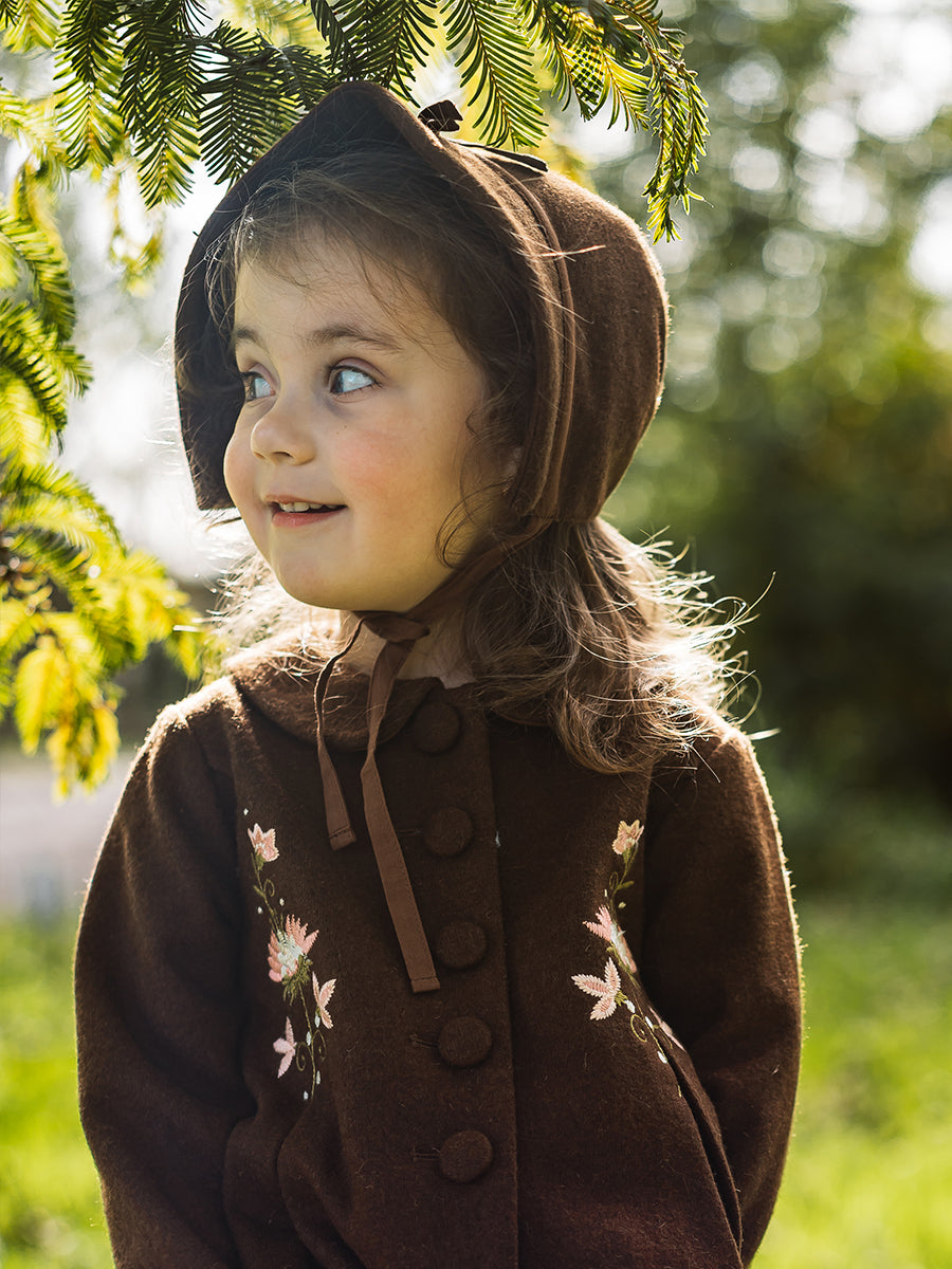 Quinn Hand-Embroidered Knitted Bonnet, Smoky Brown