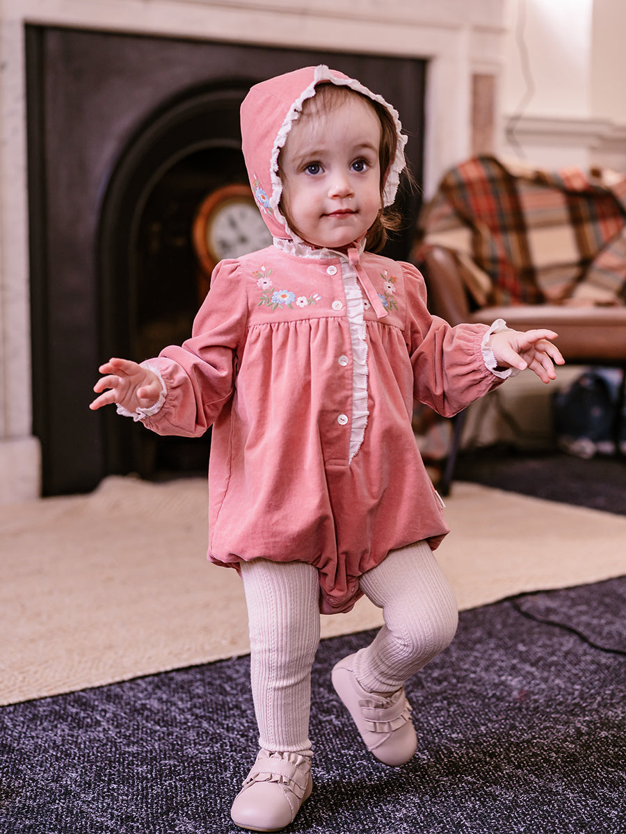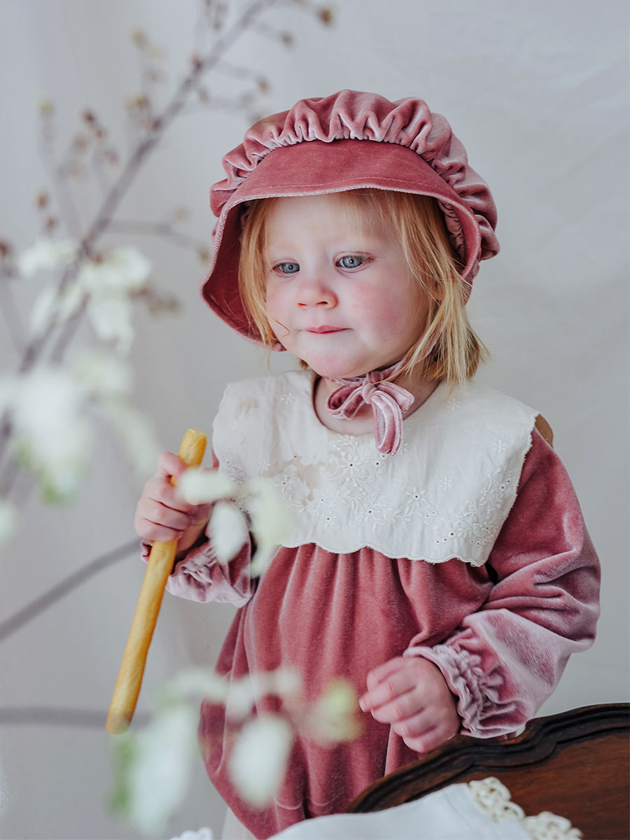 Strawberry Hand-Embroidered Bonnet, Princess Pink