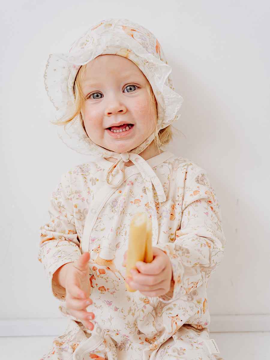 Gardenia Organic Cotton Jersey Bonnet, Happy Forest