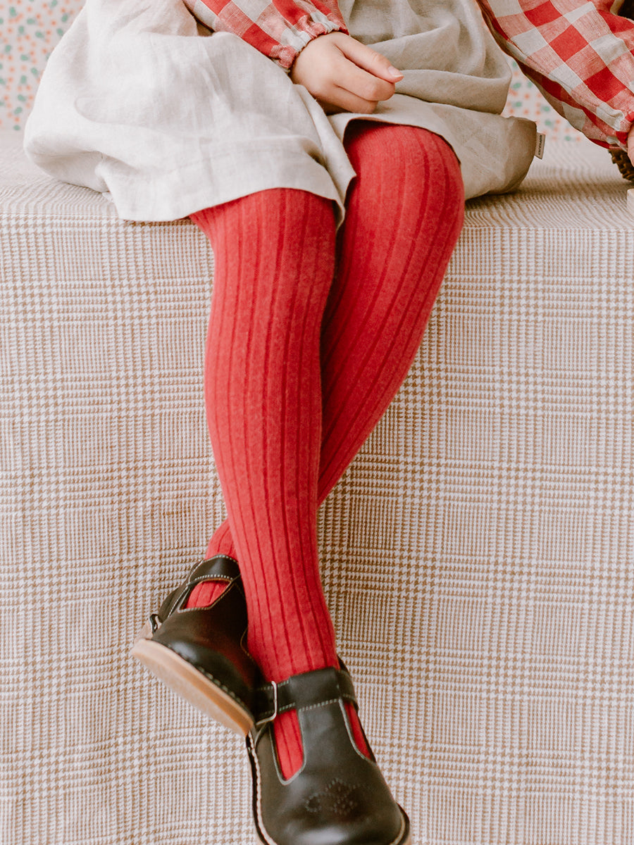 Happyology Ribbed Organic Cotton Tights, Rouge