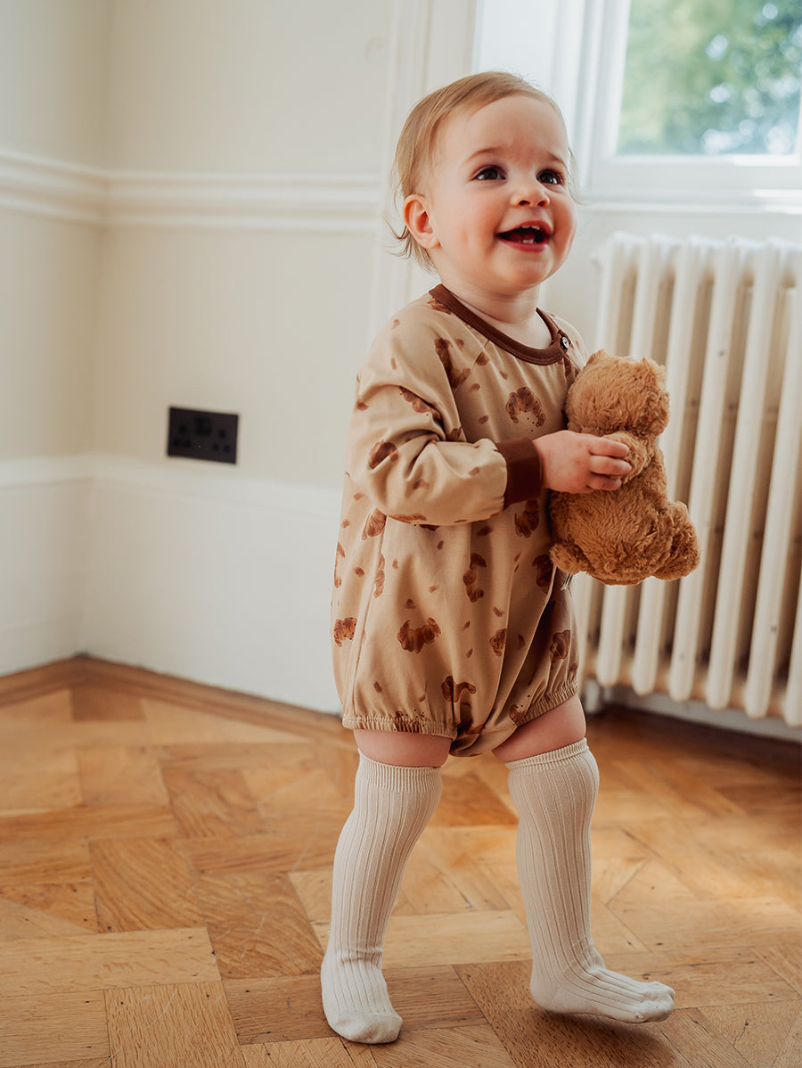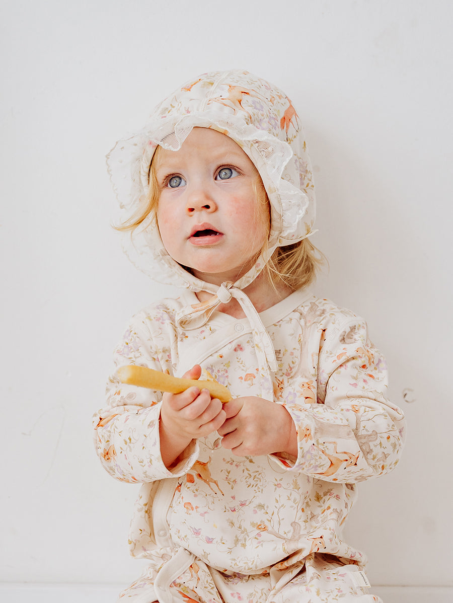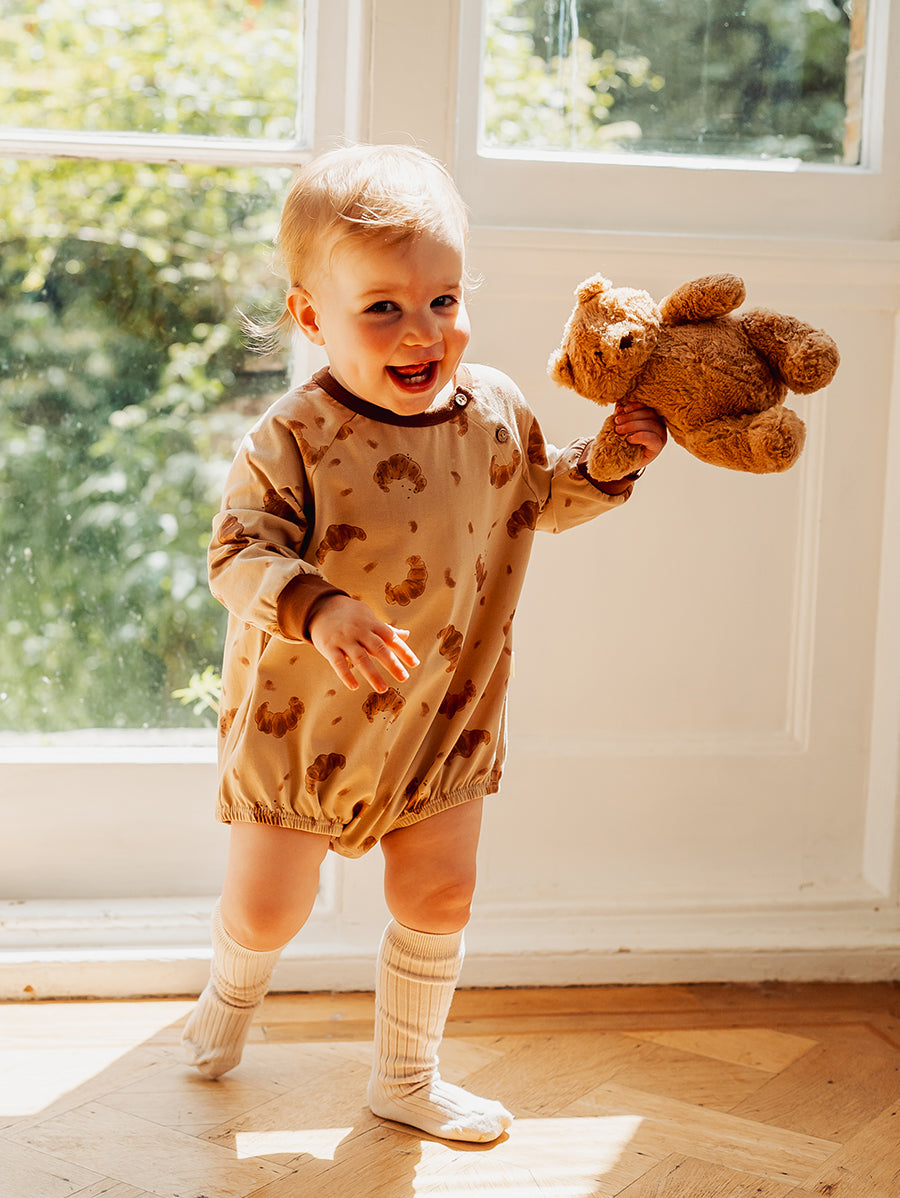 Made for first cuddles and tiny adventures, our newborn collection is crafted from buttery-soft organic cotton jersey and adorned with in-house prints. Gentle, breathable, and beautifully lightweight - each piece feels like a pure second skin for delicate newborn days.
