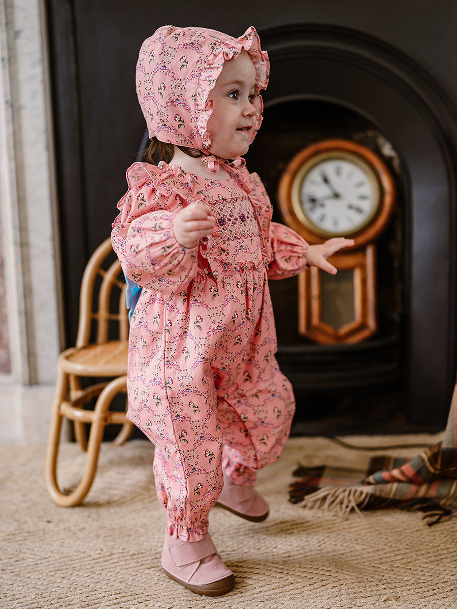 Adelaide Hand-Embroidered Romper, Vintage Bouquet, Rose
