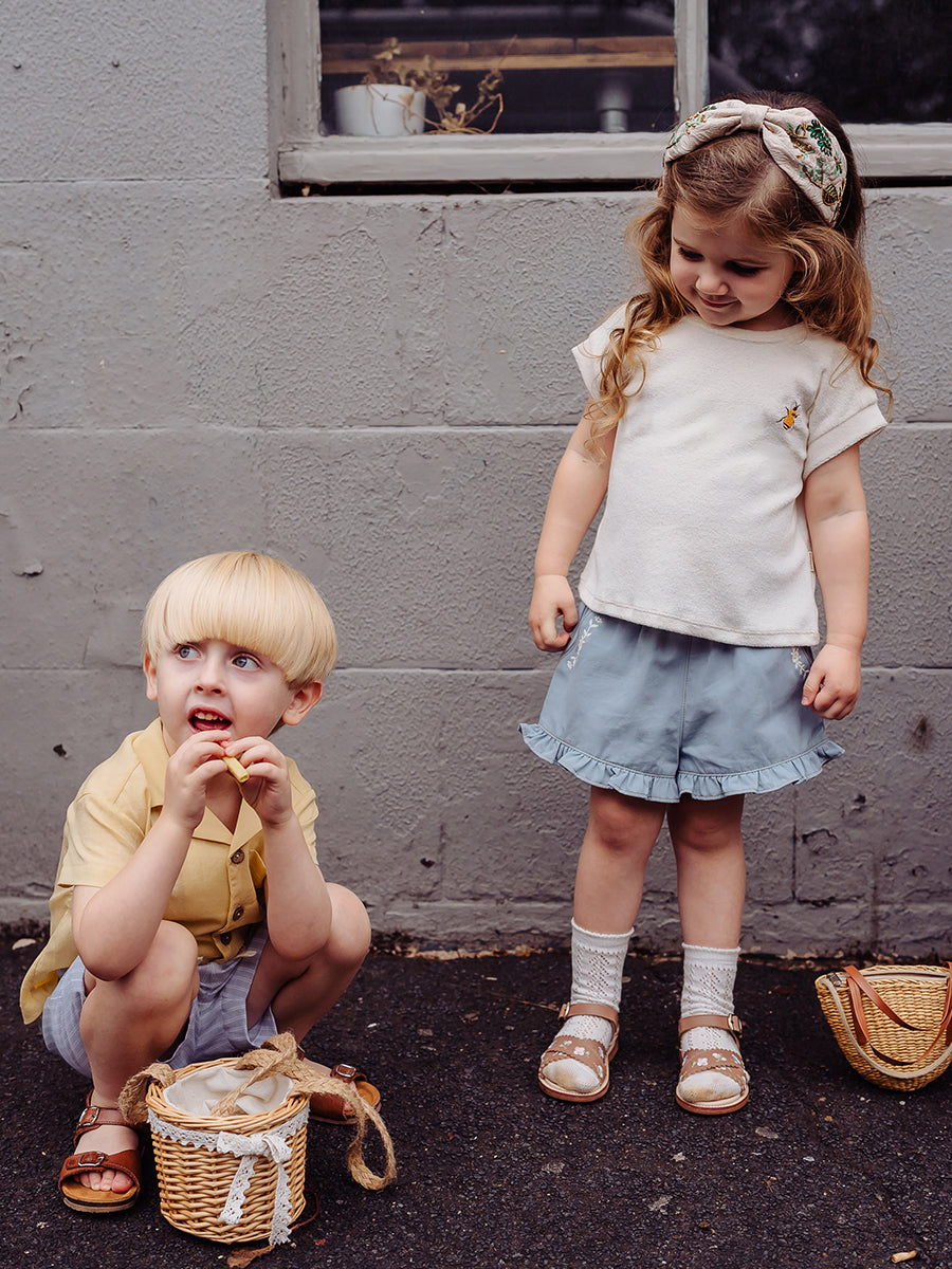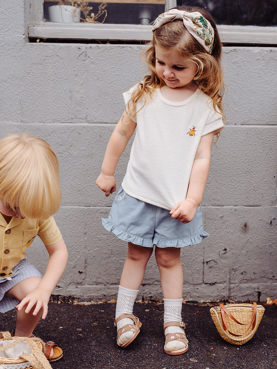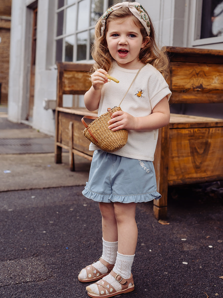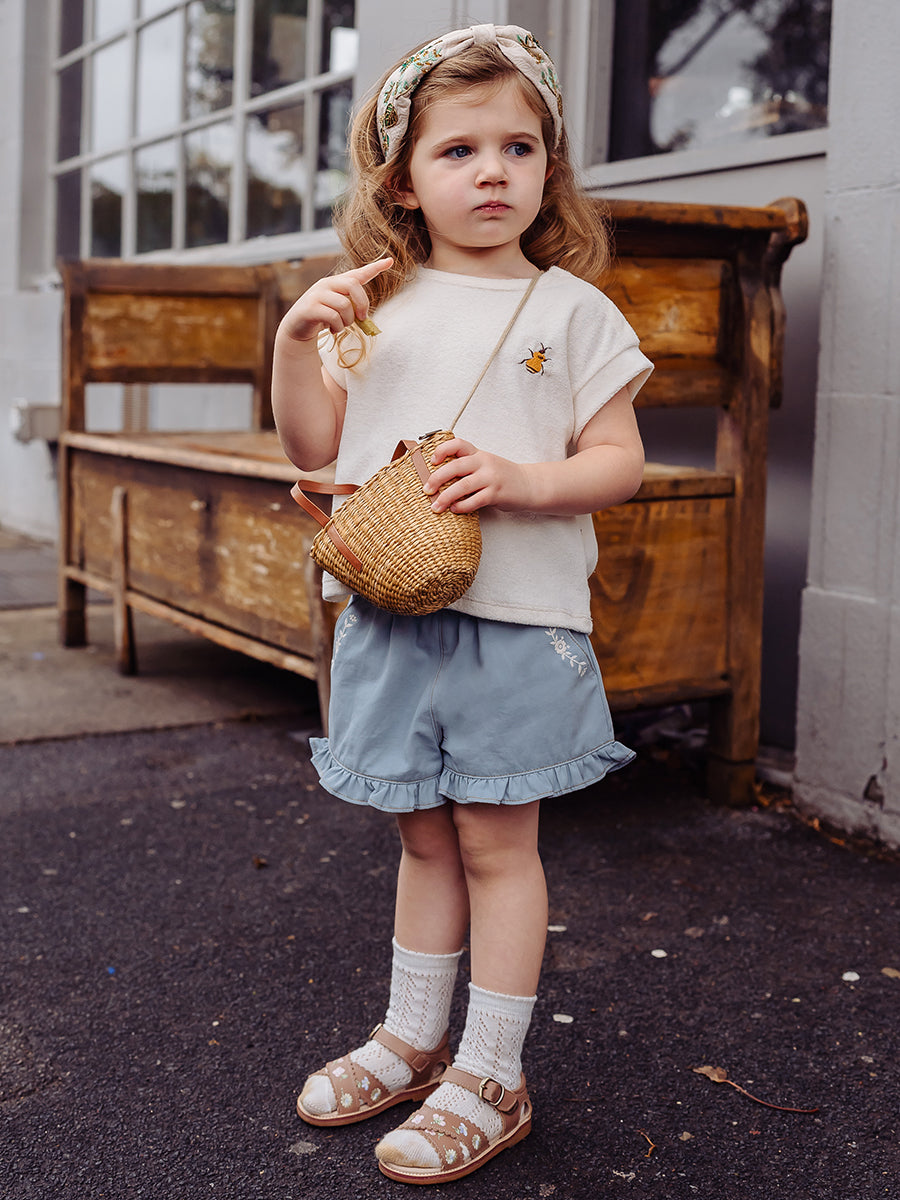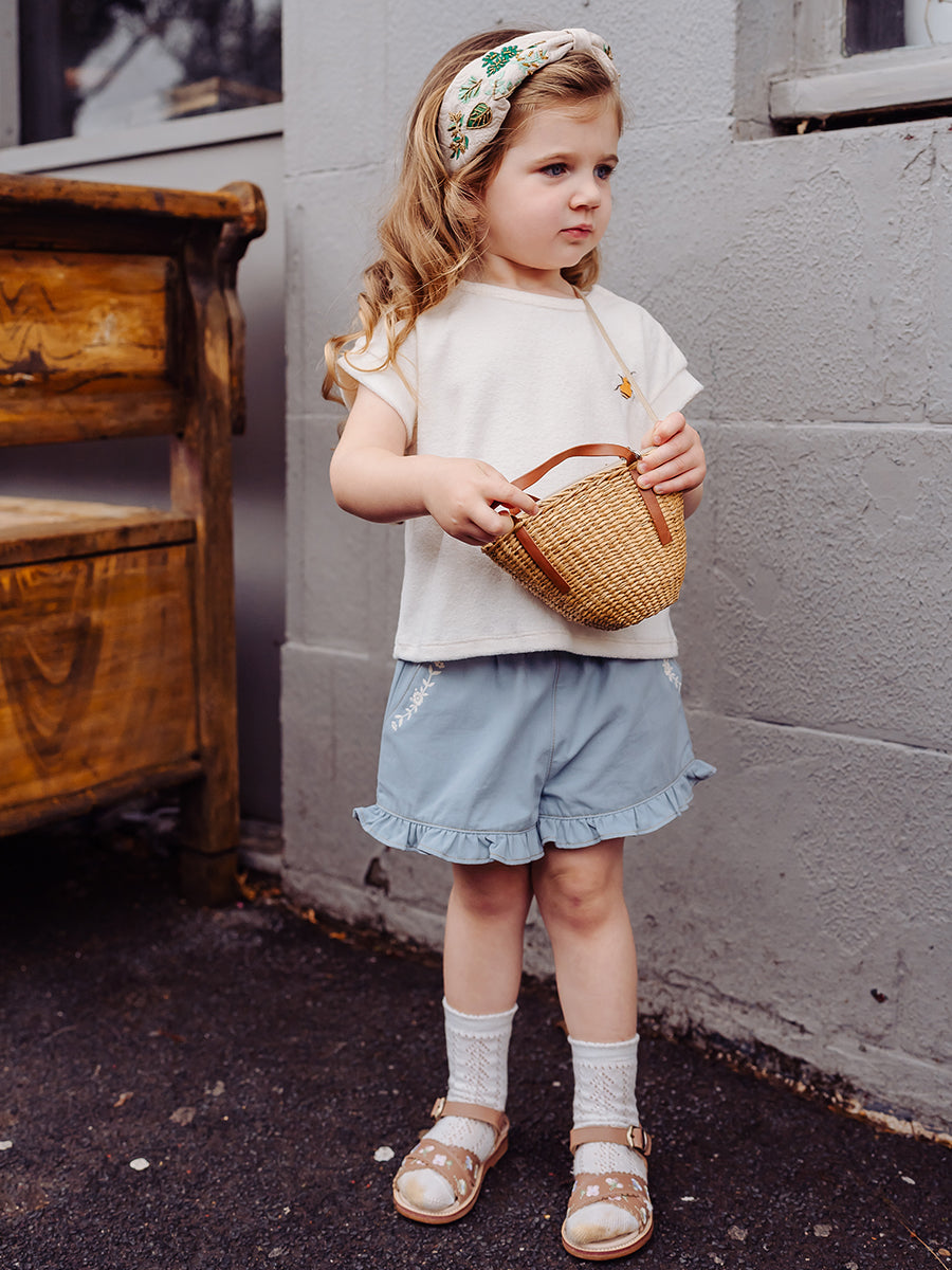 Bath Embroidered Shorts, Sky Blue