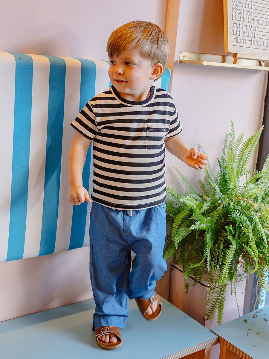 Truro Cotton Jersey Top, Black Stripe